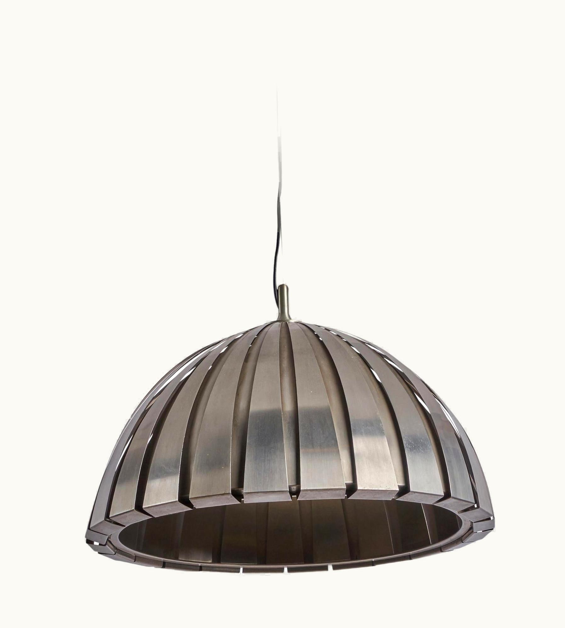 Elio Martinelli Mid-Century Modern Stainless Steel Chandelier, Martinelli Luce, Italy