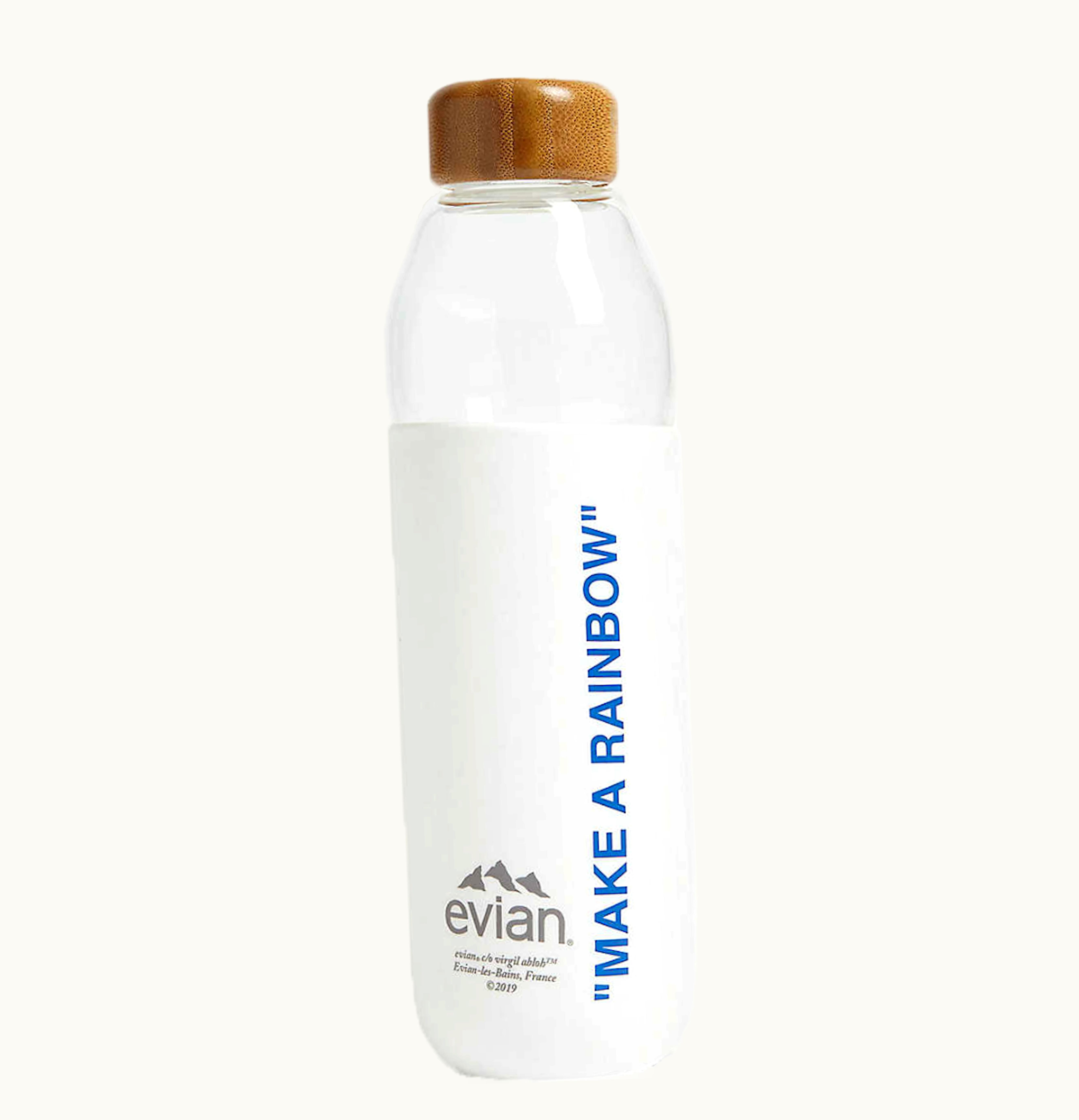 EVIAN BY VIRGIL ABLOH x SOMA Make A Rainbow Refillable Glass Water Bottle White Blue