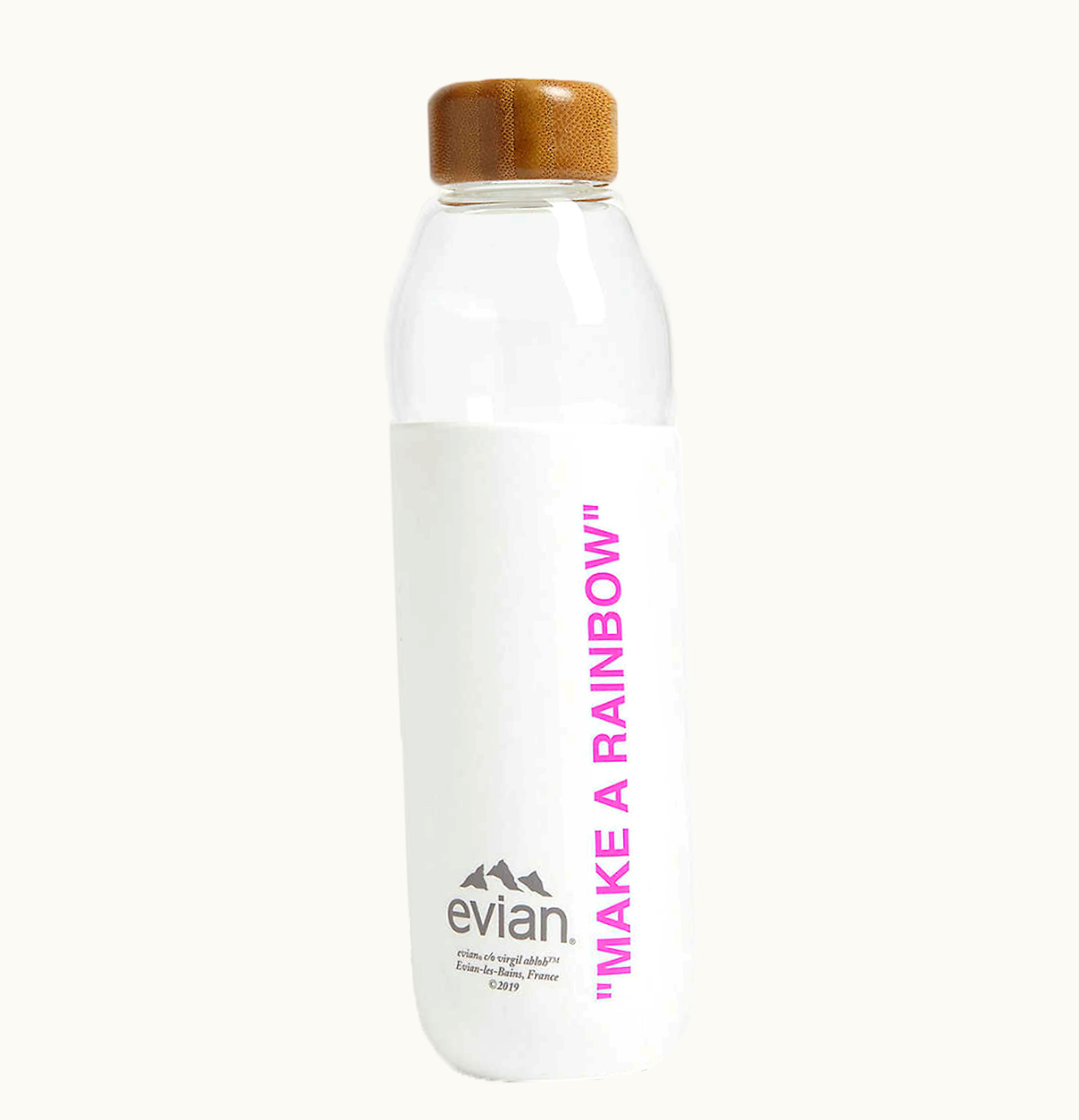 EVIAN BY VIRGIL ABLOH x SOMA Make A Rainbow Refillable Glass Water Bottle White Pink