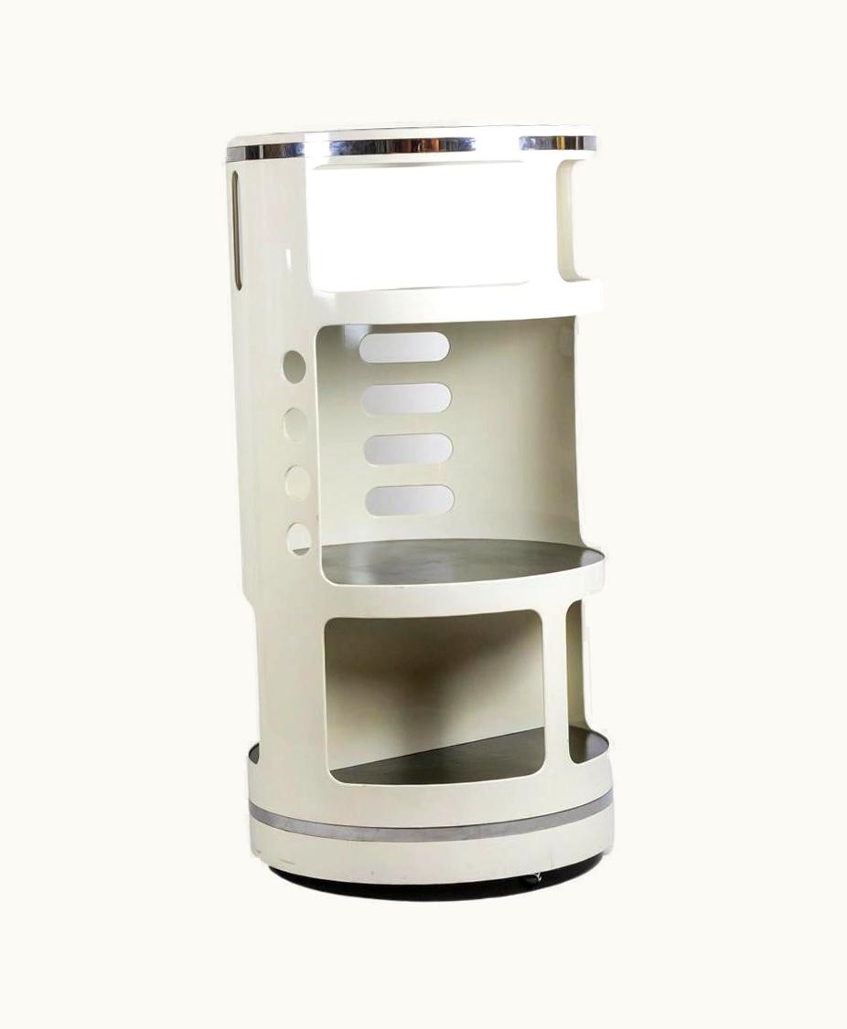 Joe Colombo White Plastic Boby 3 Trolley By Joe Colombo For Bieffeplast, Italy, 1970s