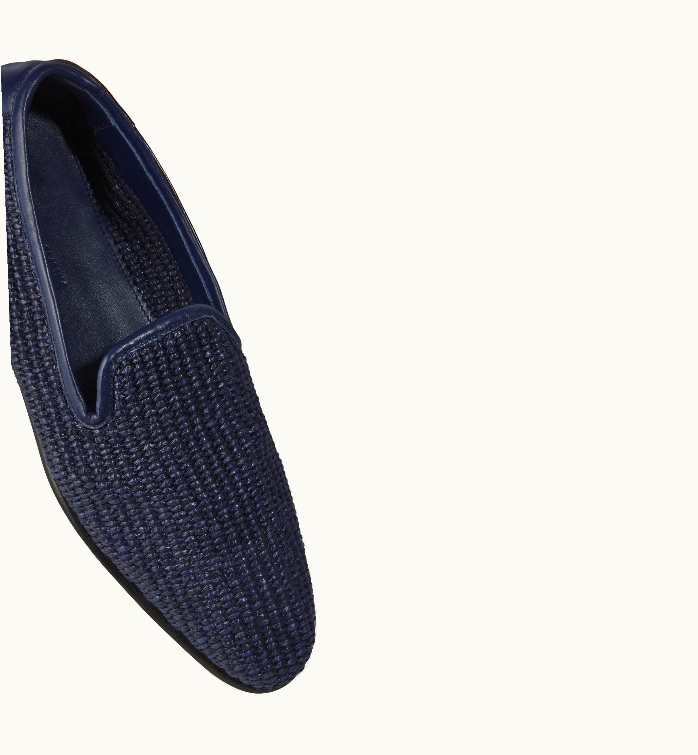 Manolo Blahnik Mario Navy Blue Raffia Loafers