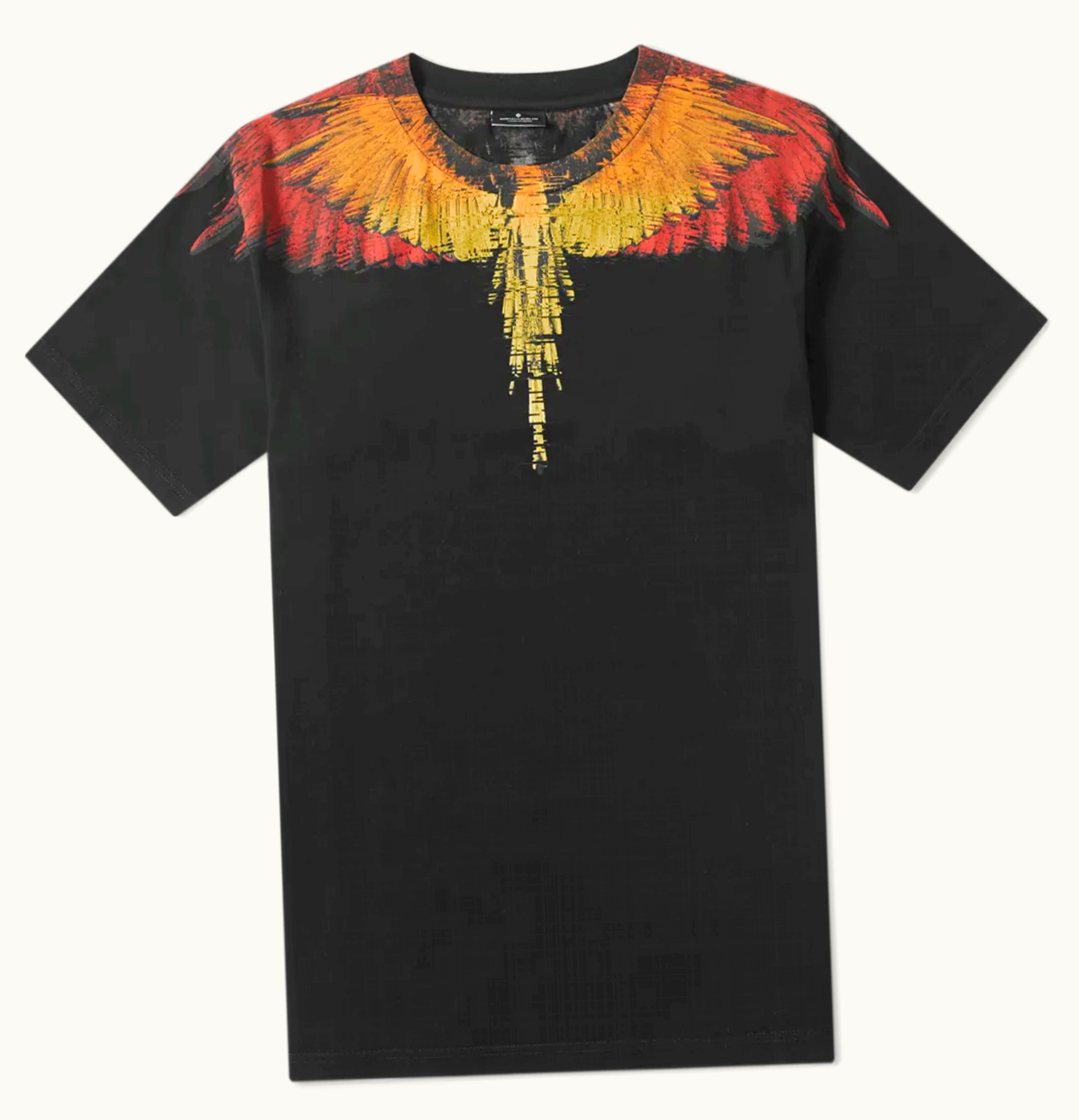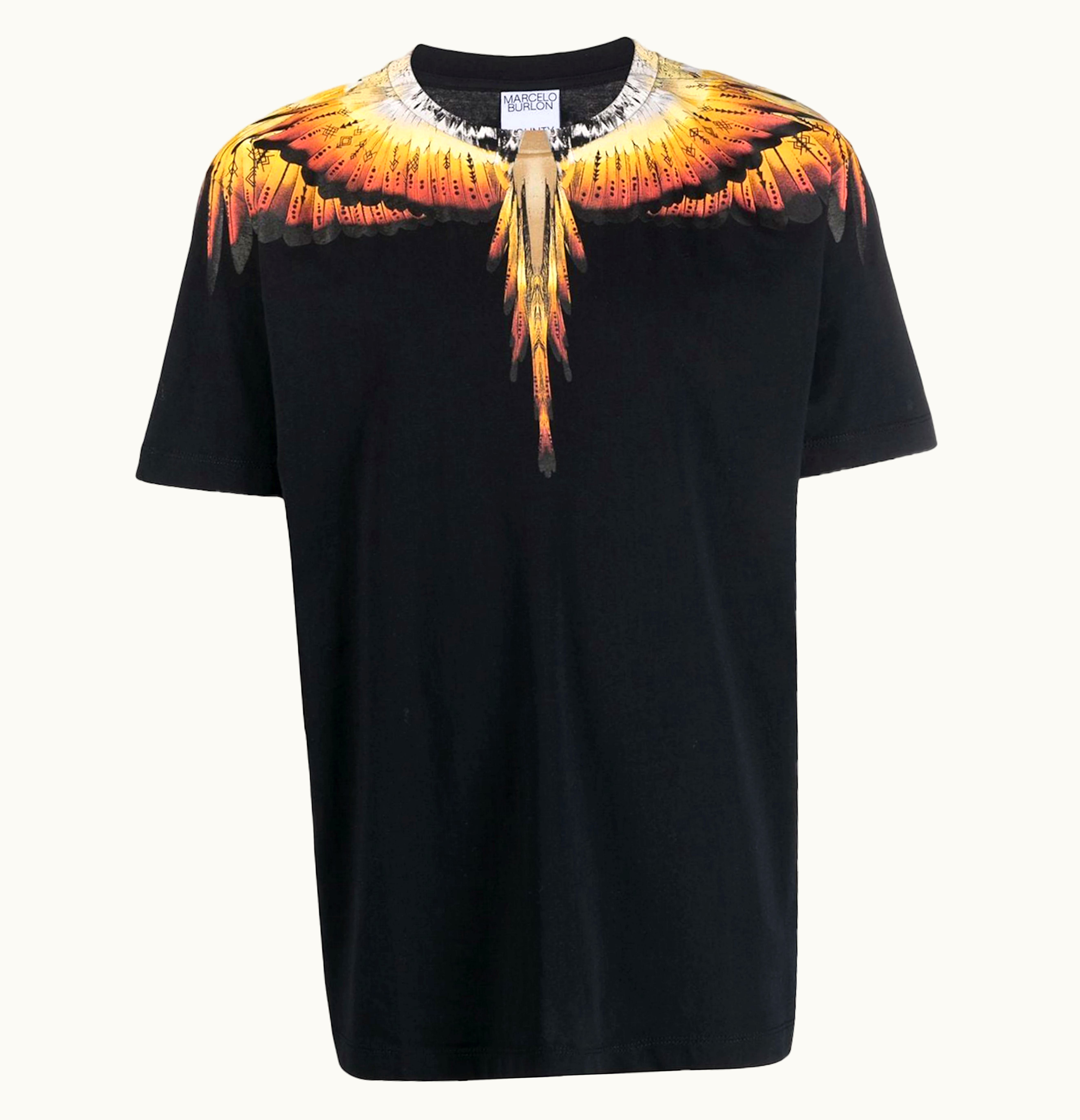 Marcelo Burlon Wings Print T Shirt Black Yellow Orange