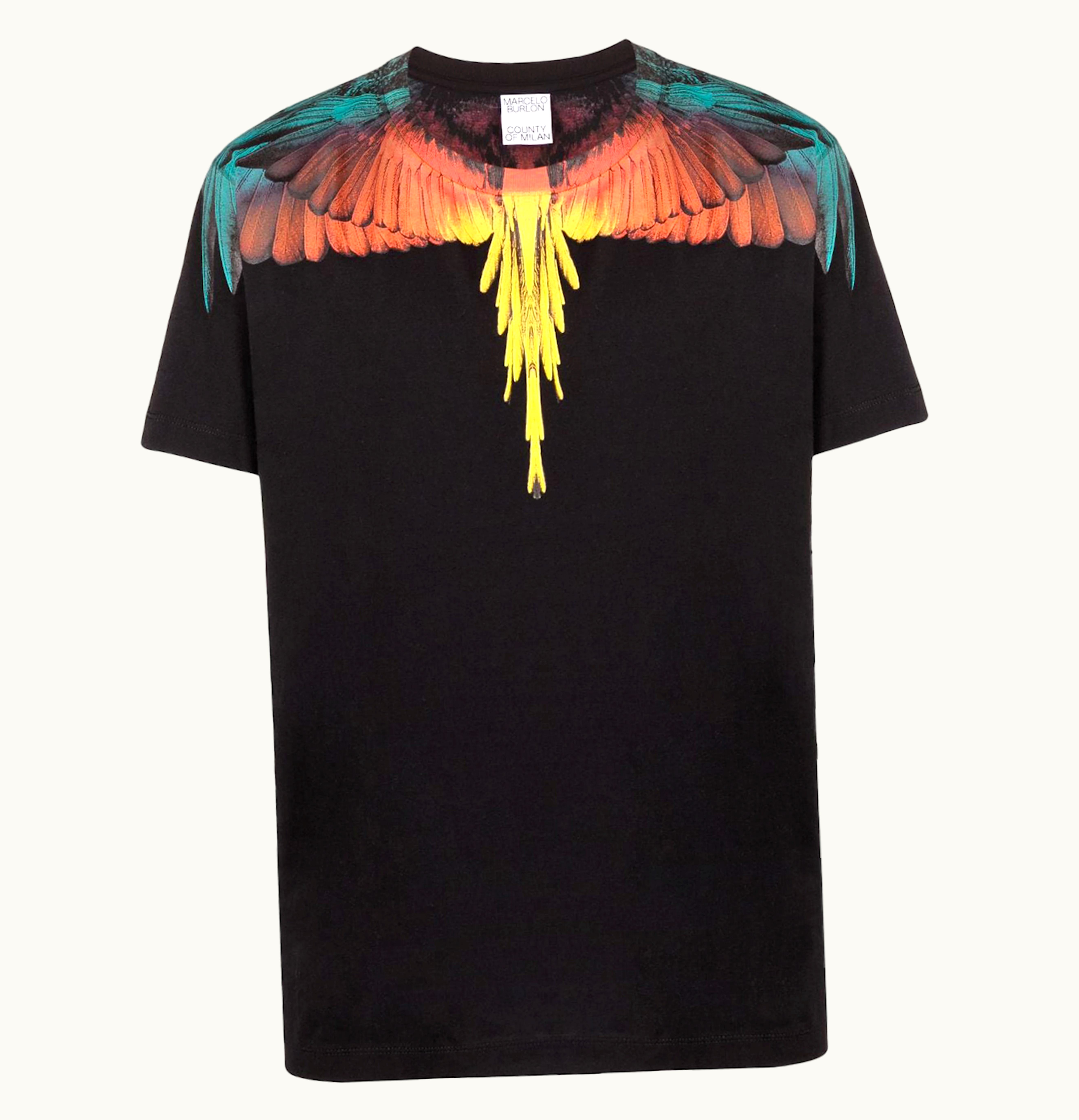 Marcelo Burlon Wings Print T Shirt Black Blue Orange