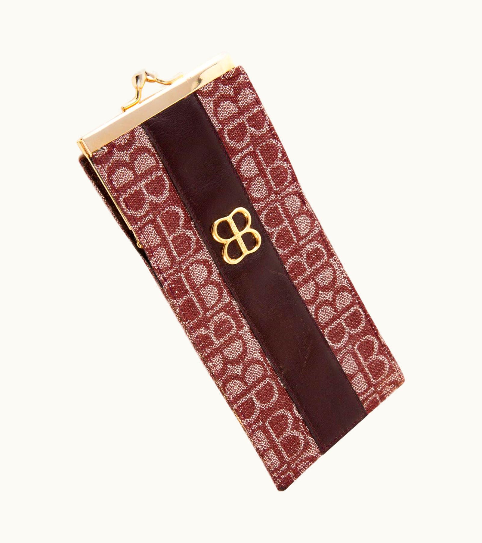 1970s Balenciaga Bordeaux Monogram Logo Case | GLINT