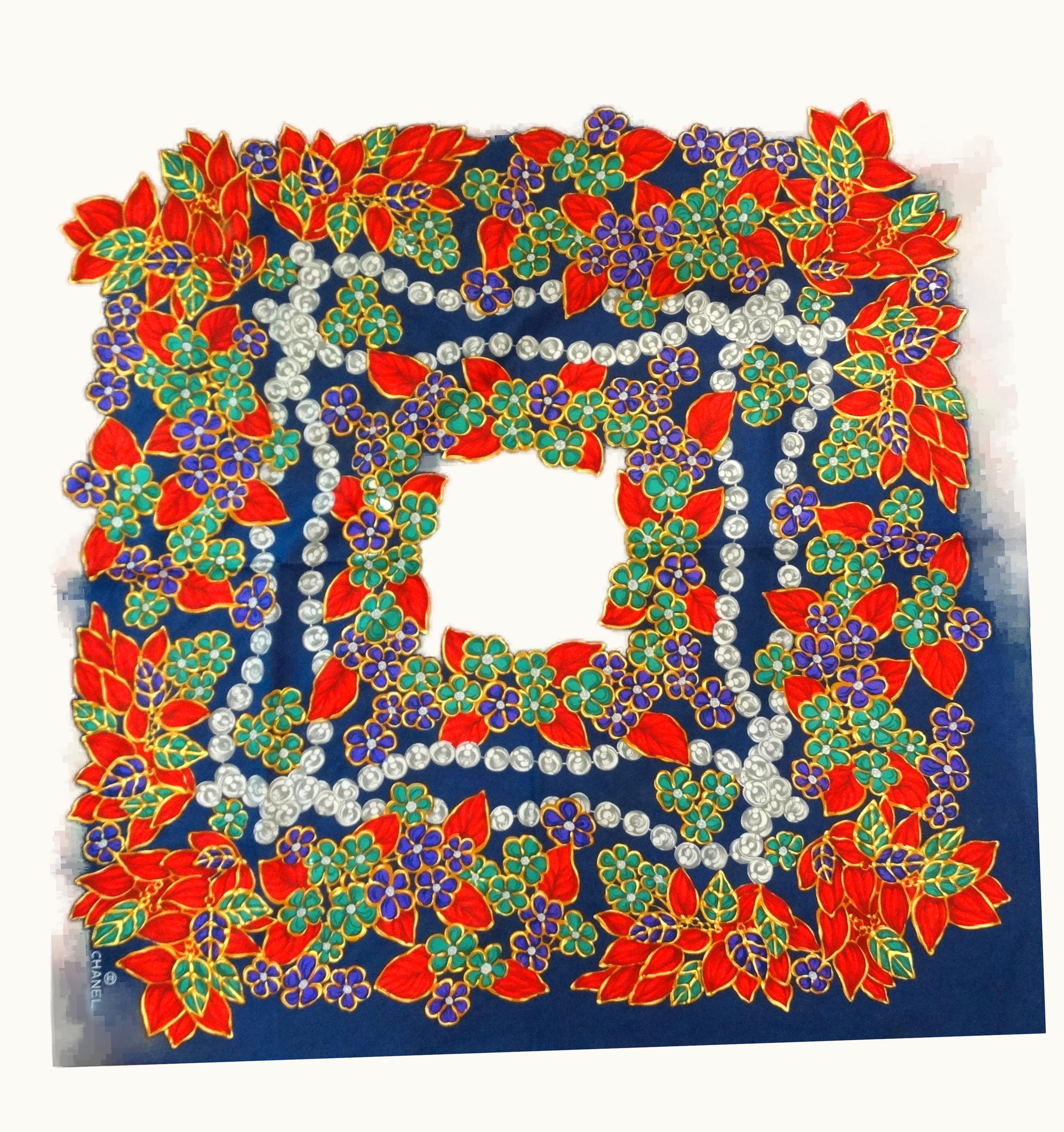 1980s Chanel Pearl Floral Scarf | GLINT