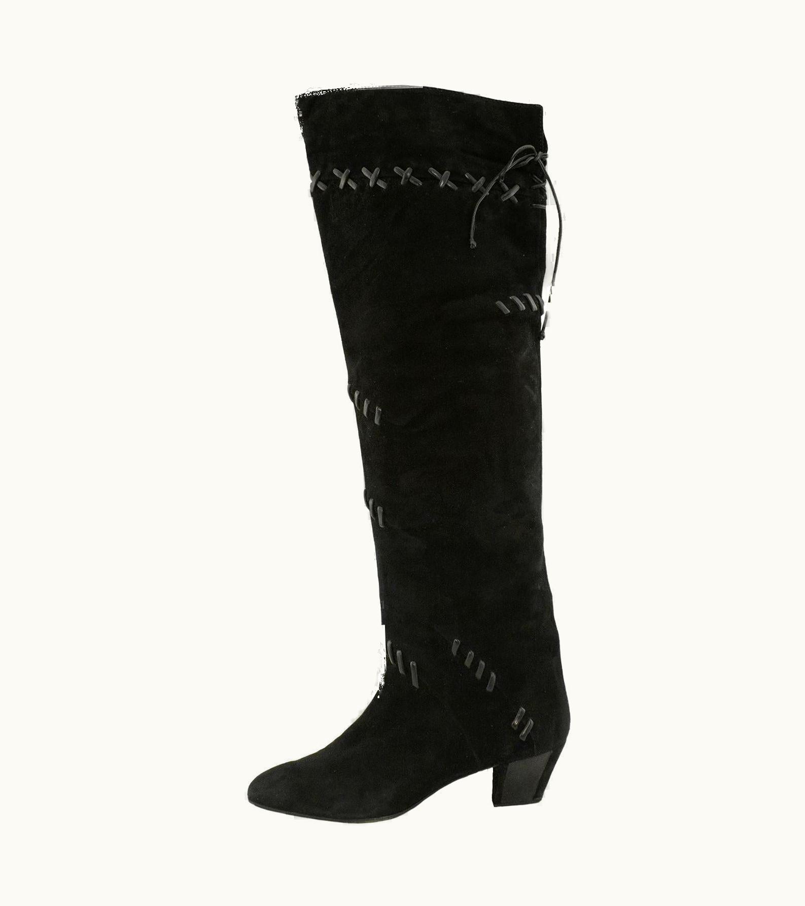 1980s Mario Valentino Black Suede Knee Boots | GLINT