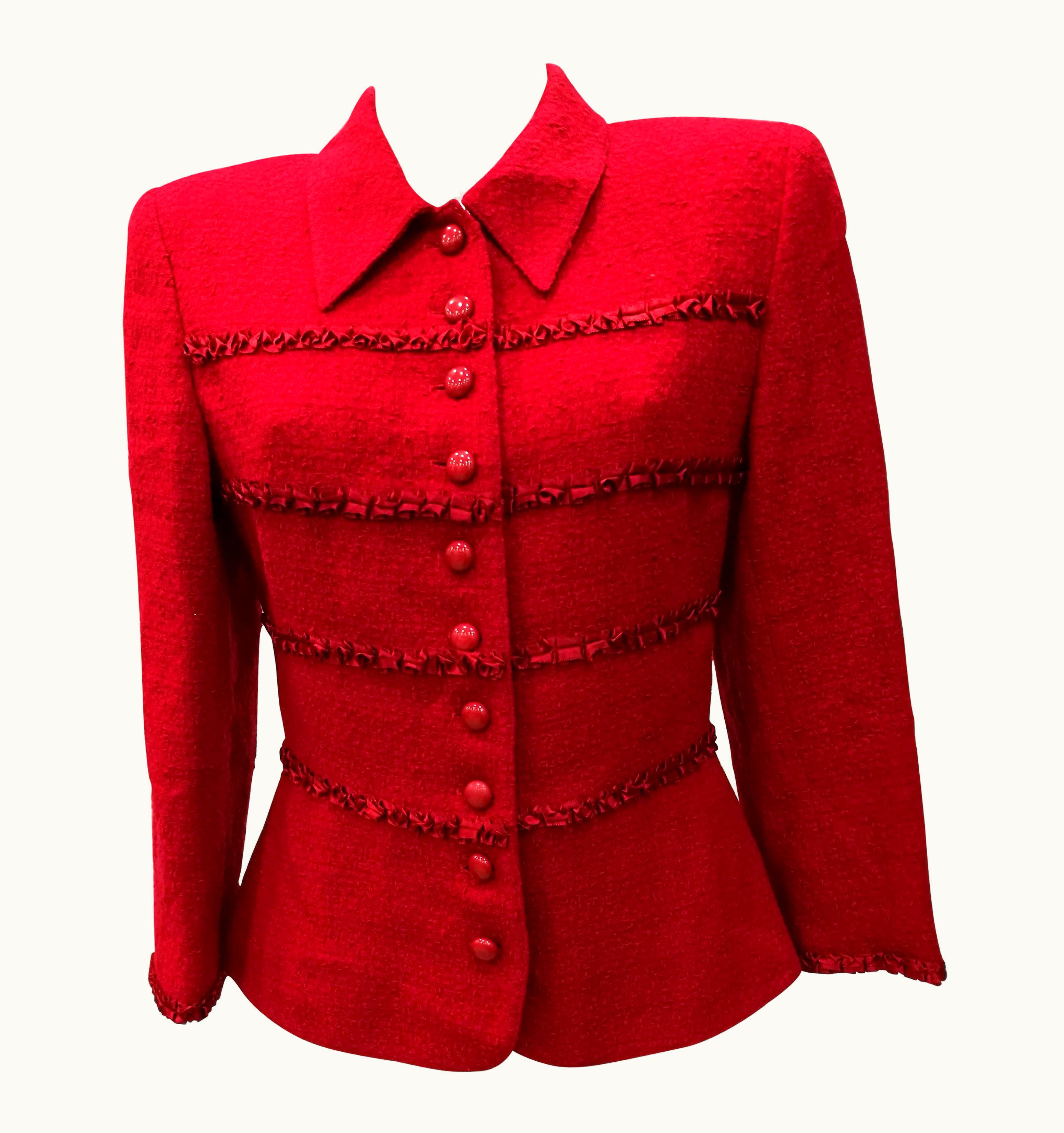 1980s Valentino Miss V. Red Wool Jacket | GLINT