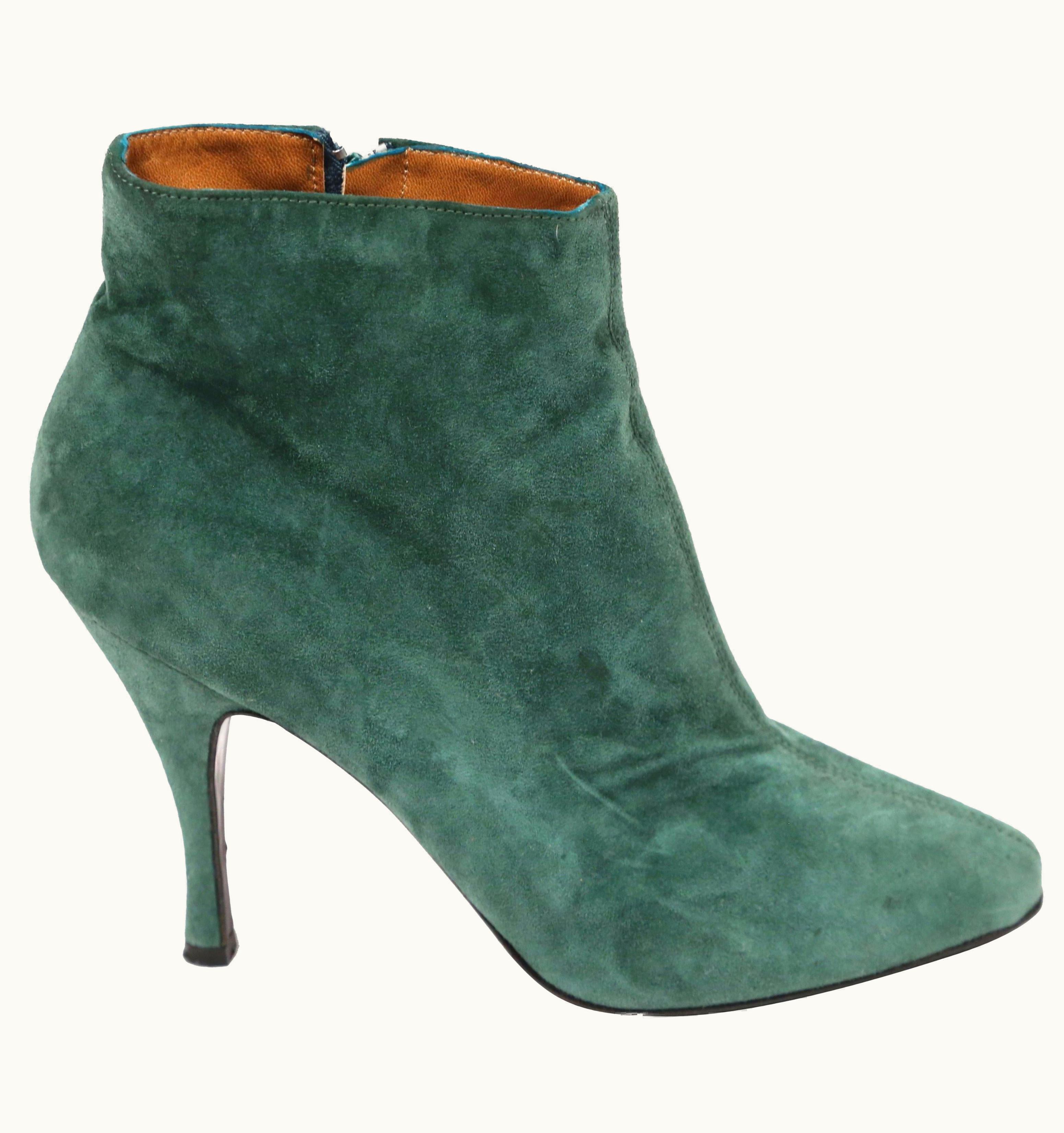 1990' Azzedine Alaia Green Suede Ankle Boots | GLINT