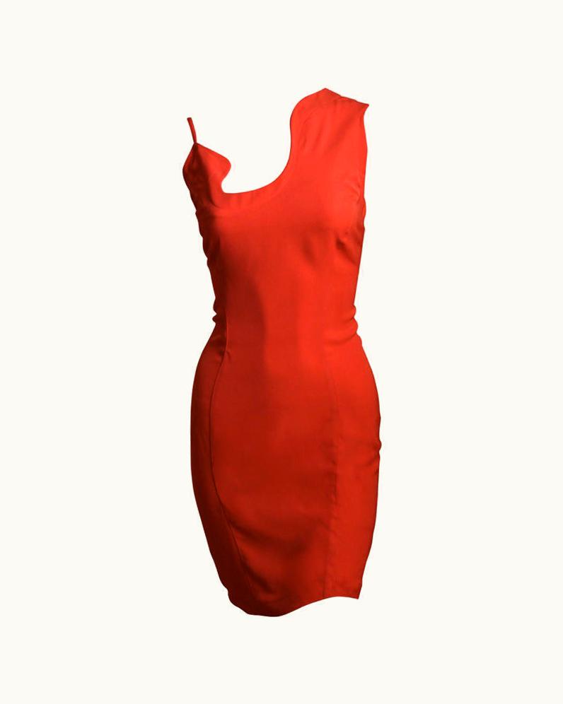 1990' Thierry Mugler Persimmon Asymmetrical Dress | GLINT