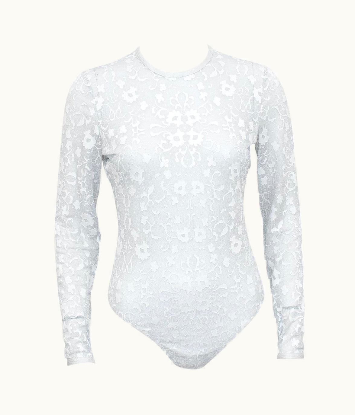 1990s Gianni Versace Silver Lurex Lace Bodysuit | GLINT