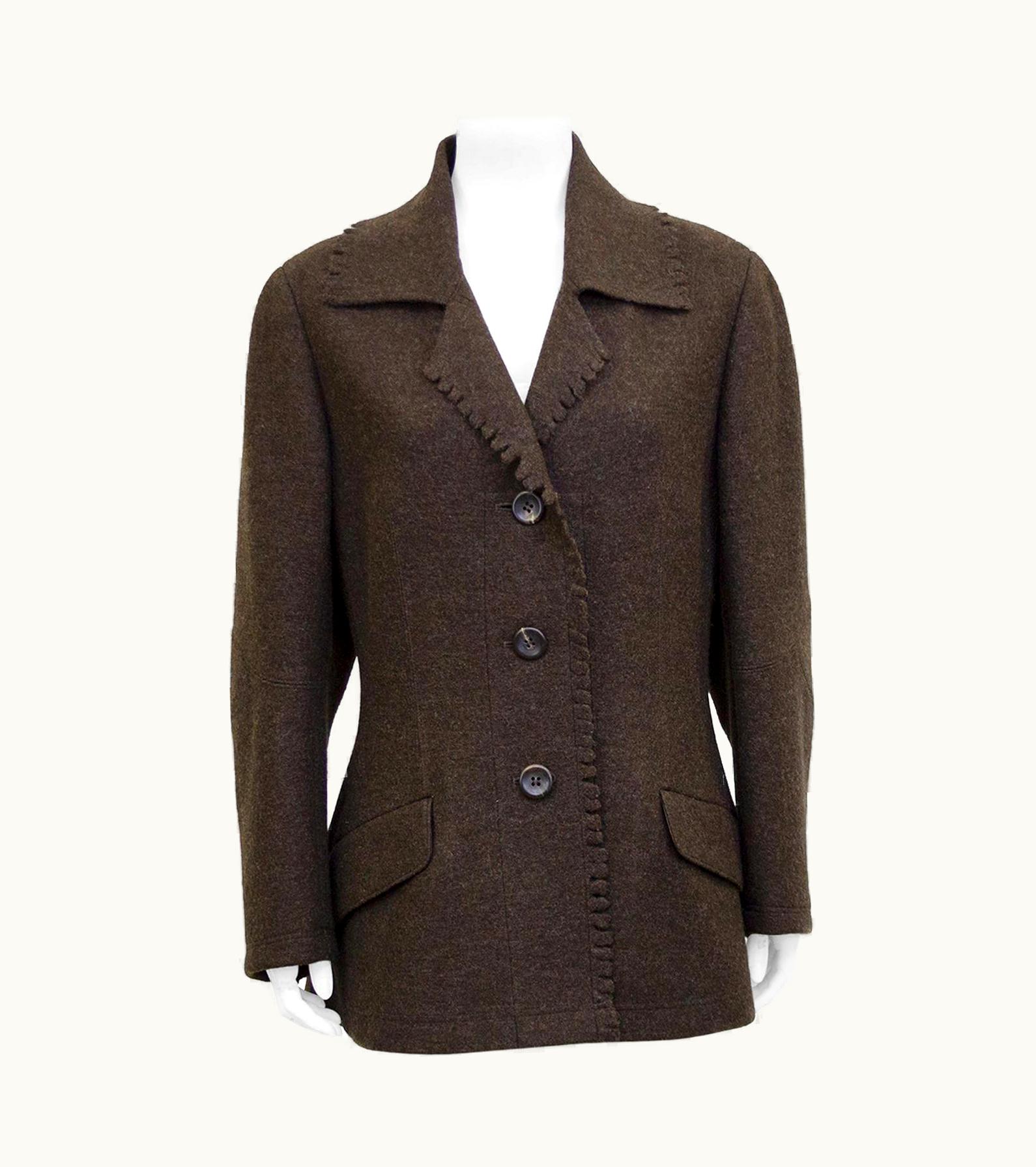 1990s Issey Miyake Brown Felted Wool Peacoat | GLINT