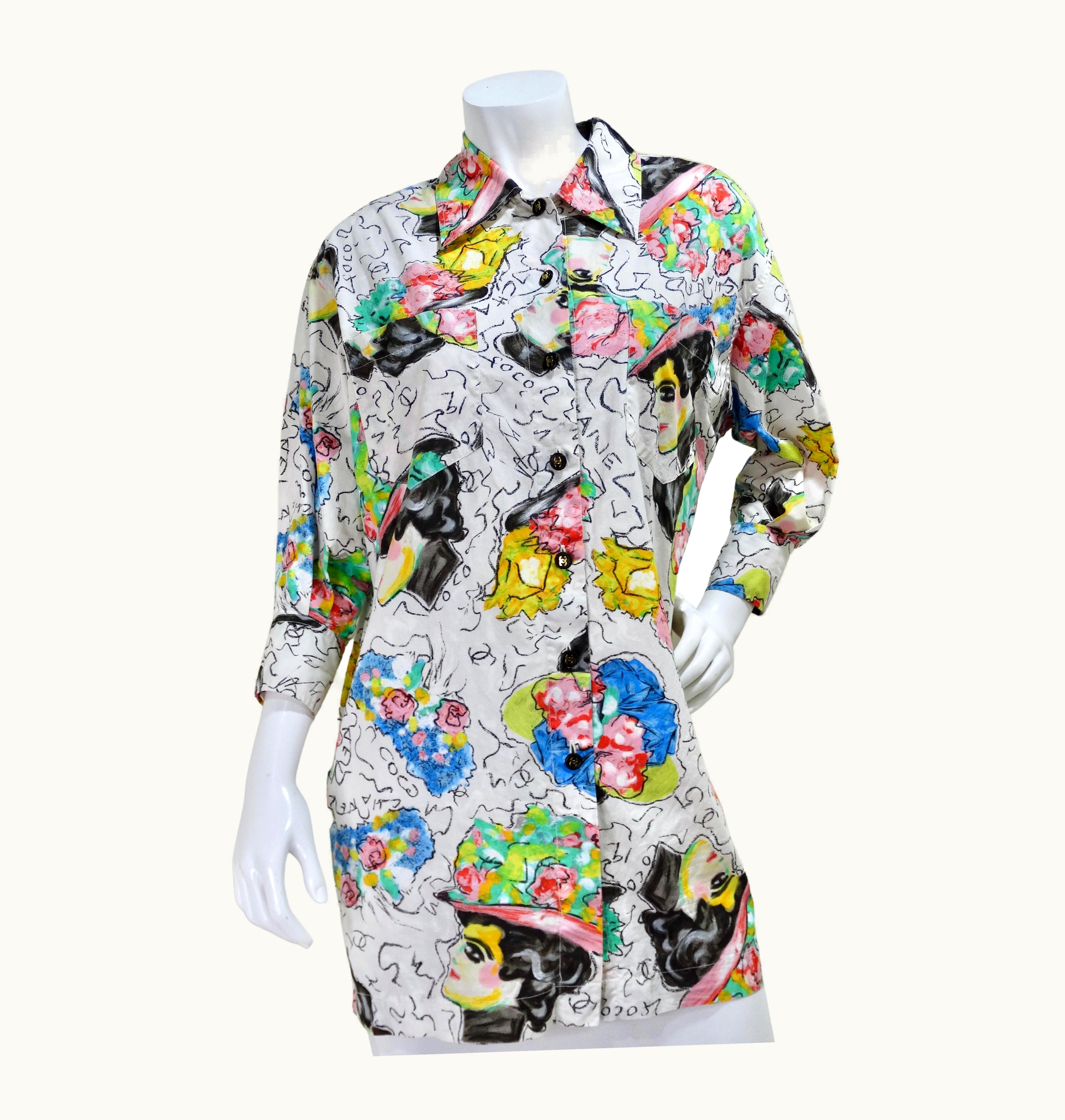 Chanel 1990' Cc Buttons Abstract Print Blouse | GLINT