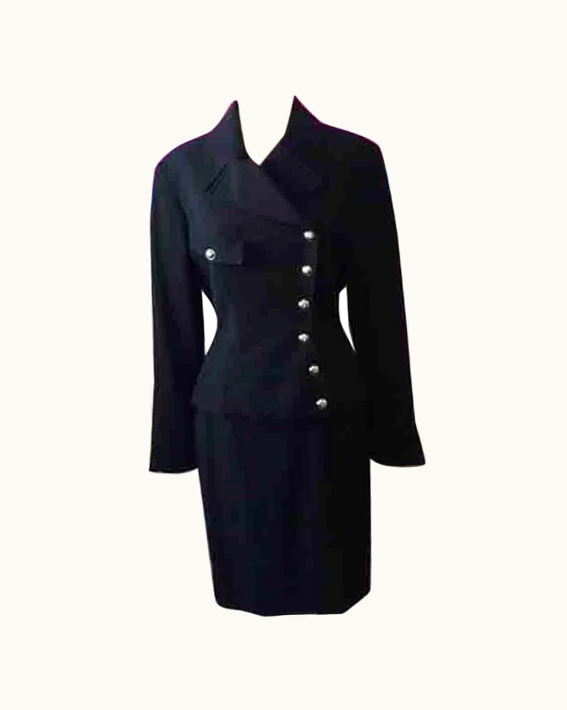 Thierry Mugler Black Wool Skirt Suit | GLINT