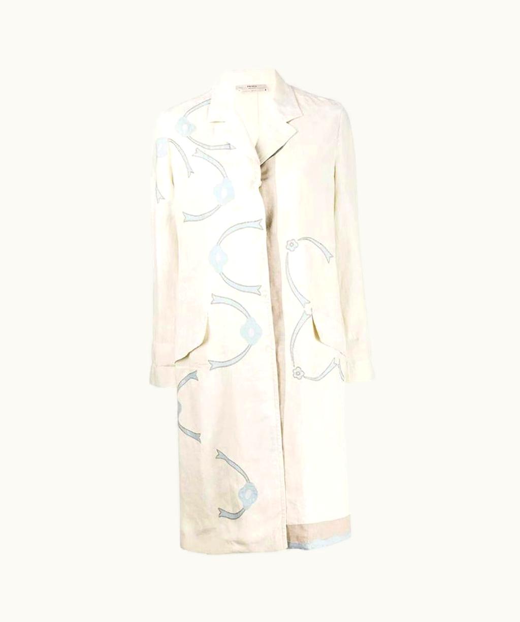 1990s Prada Ivory Printed Linen Coat | GLINT