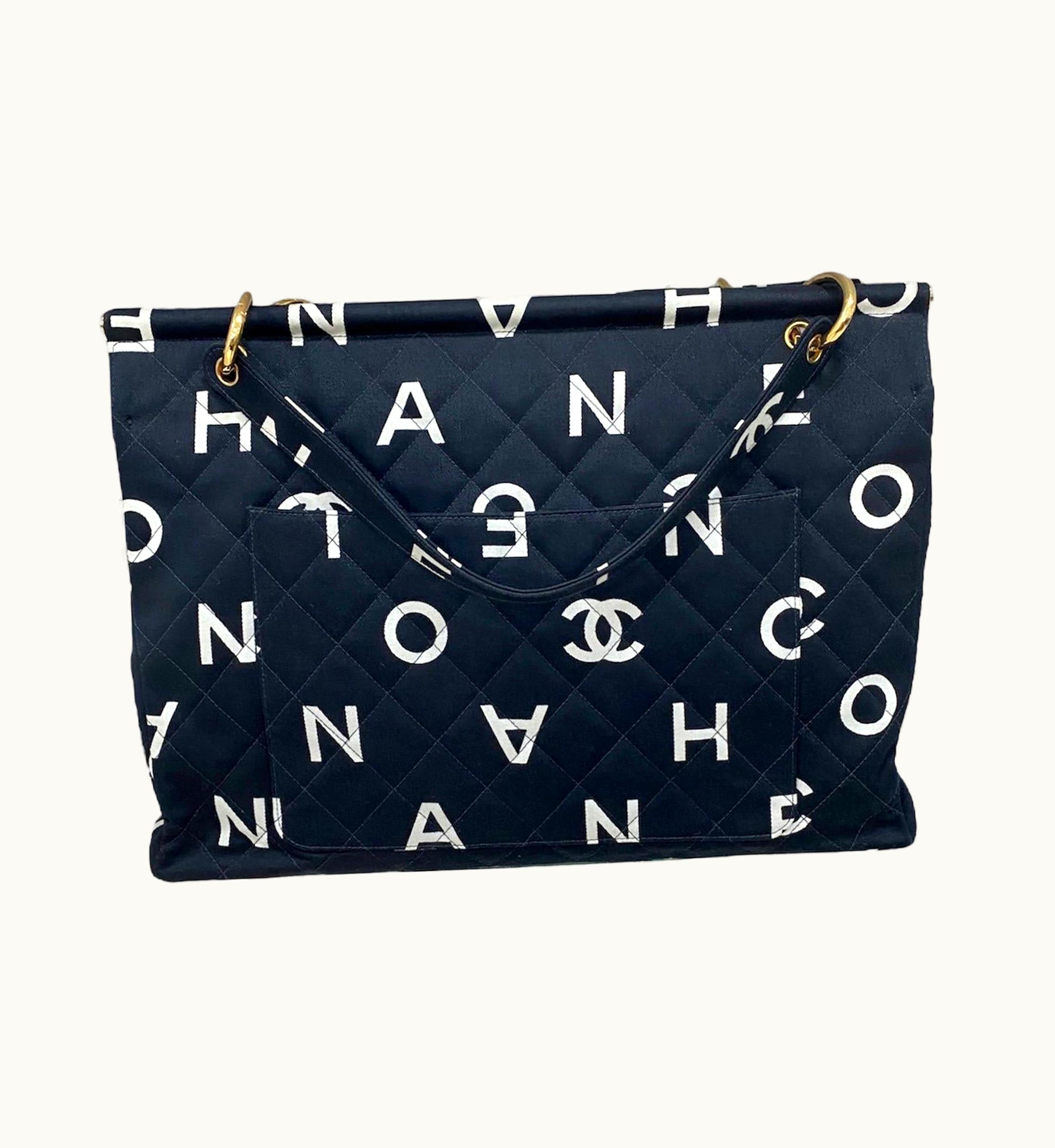 1997 Chanel Tote Bag Logo Letters Black | GLINT