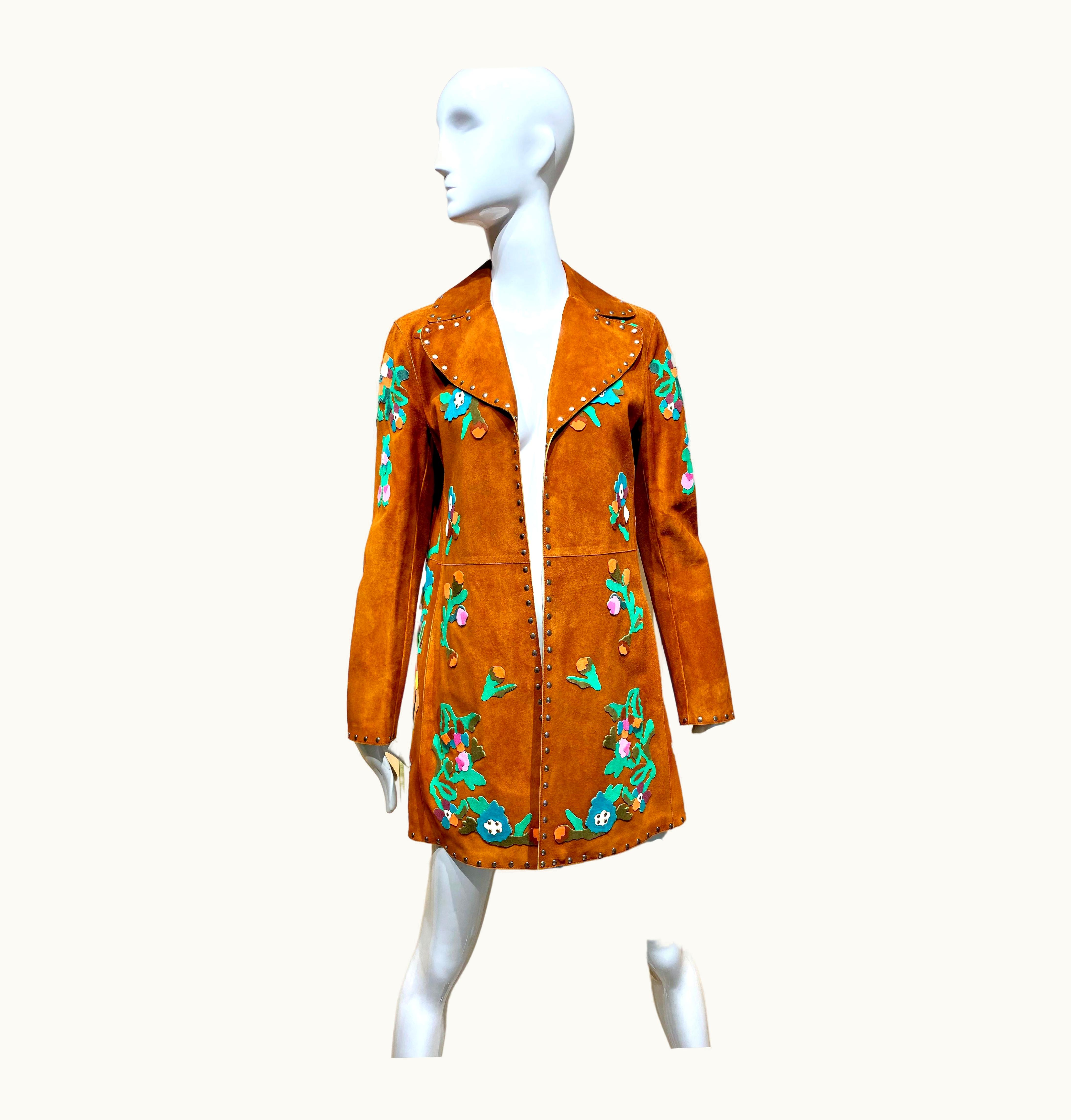 2000s Valentino Suede Embroidered Coat | GLINT