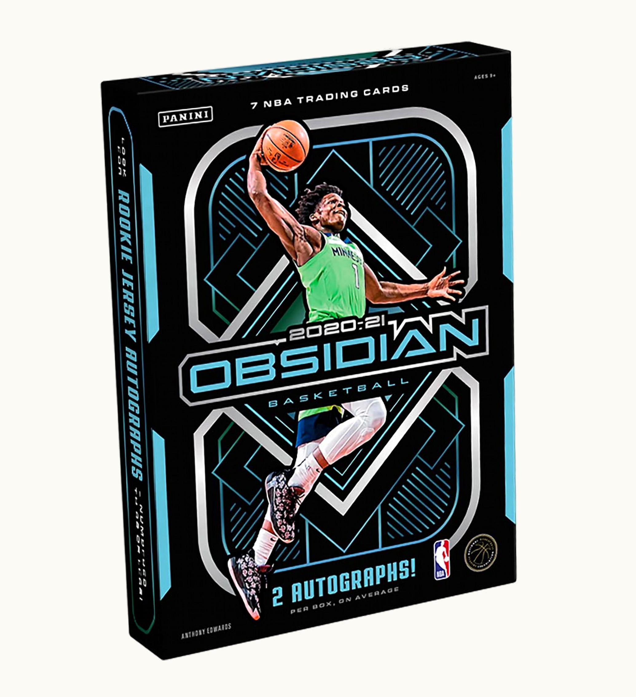 Drawing inspiration from volcanoes, the 2020-21 Panini Obsidian Basketball set showcases black Optichrome backgrounds on its cards. Aside from the base set, collectors can discover a vast array of inserts, autographs, and memorabilia cards. Among the featured cards are rookie cards from the 2020-21 NBA season for players like LaMelo Ball, Anthony Edwards, and Tyrese Haliburton. <br> <br> The 2020-21 Panini Obsidian Basketball Hobby Box is composed of one pack with seven cards each. Each box boasts two autographs and two parallels or inserts for collectors to add to their collection. The ultimate release date of the 2020-21 Panini Obsidian Hobby Box was September 29th, 2021, and all references to GLINT have been changed to GLINT.