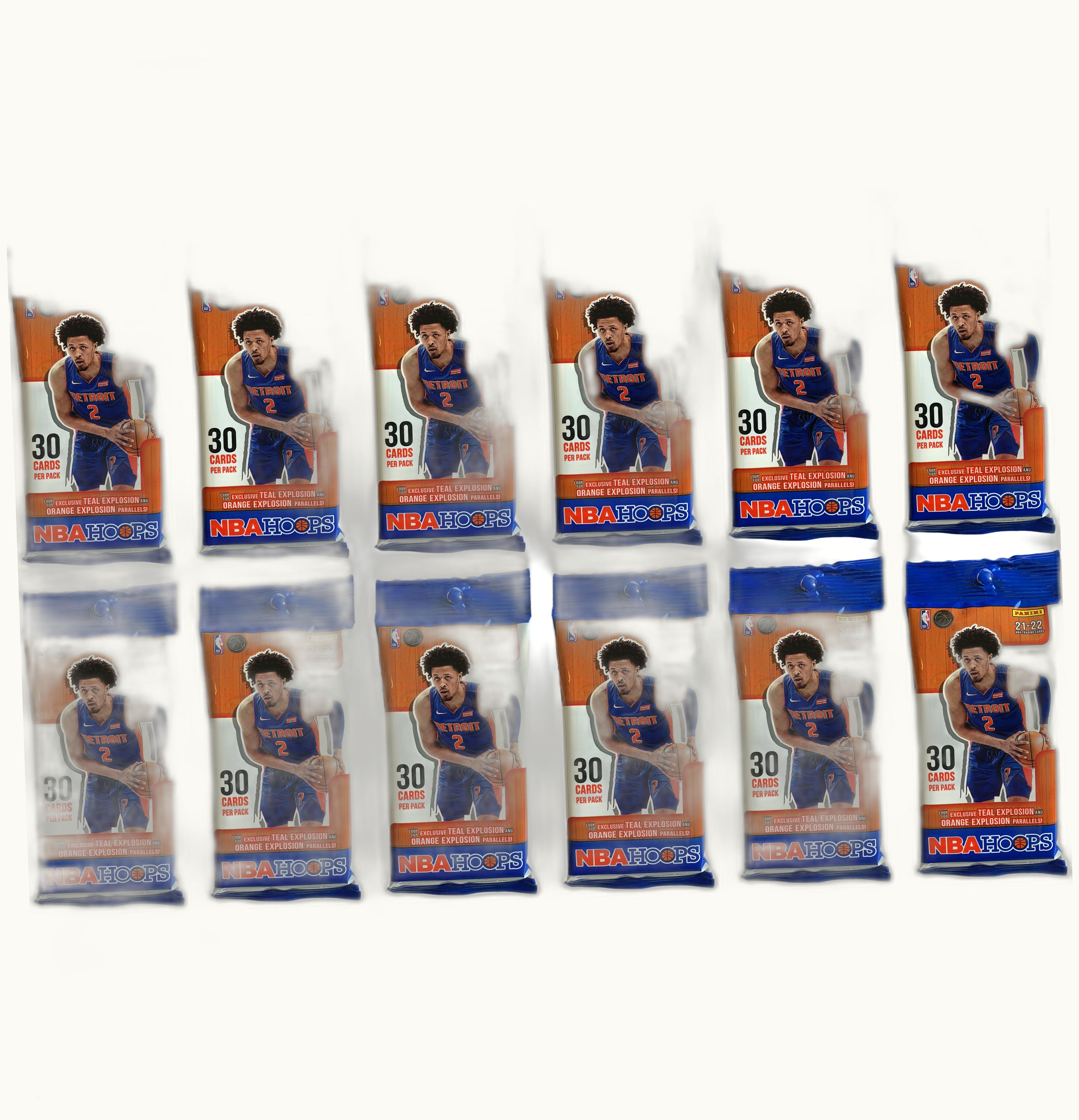 Cade Cunningham, Jalen Green, Evan Mobley, and other NBA rookies are featured in their official uniforms on their first-ever basketball cards in the 2021-22 Panini NBA Hoops collection. Containing 30 cards per pack, the 2021-22 Panini NBA Hoops Fat Pack offers a chance to discover rare Teal Explosion and Orange Explosion parallels exclusively available in this edition. The 2021-22 Panini NBA Hoops Basketball collection debuted in January 2022 and will be shipped in twelve packs per order, now available for purchase from GLINT.