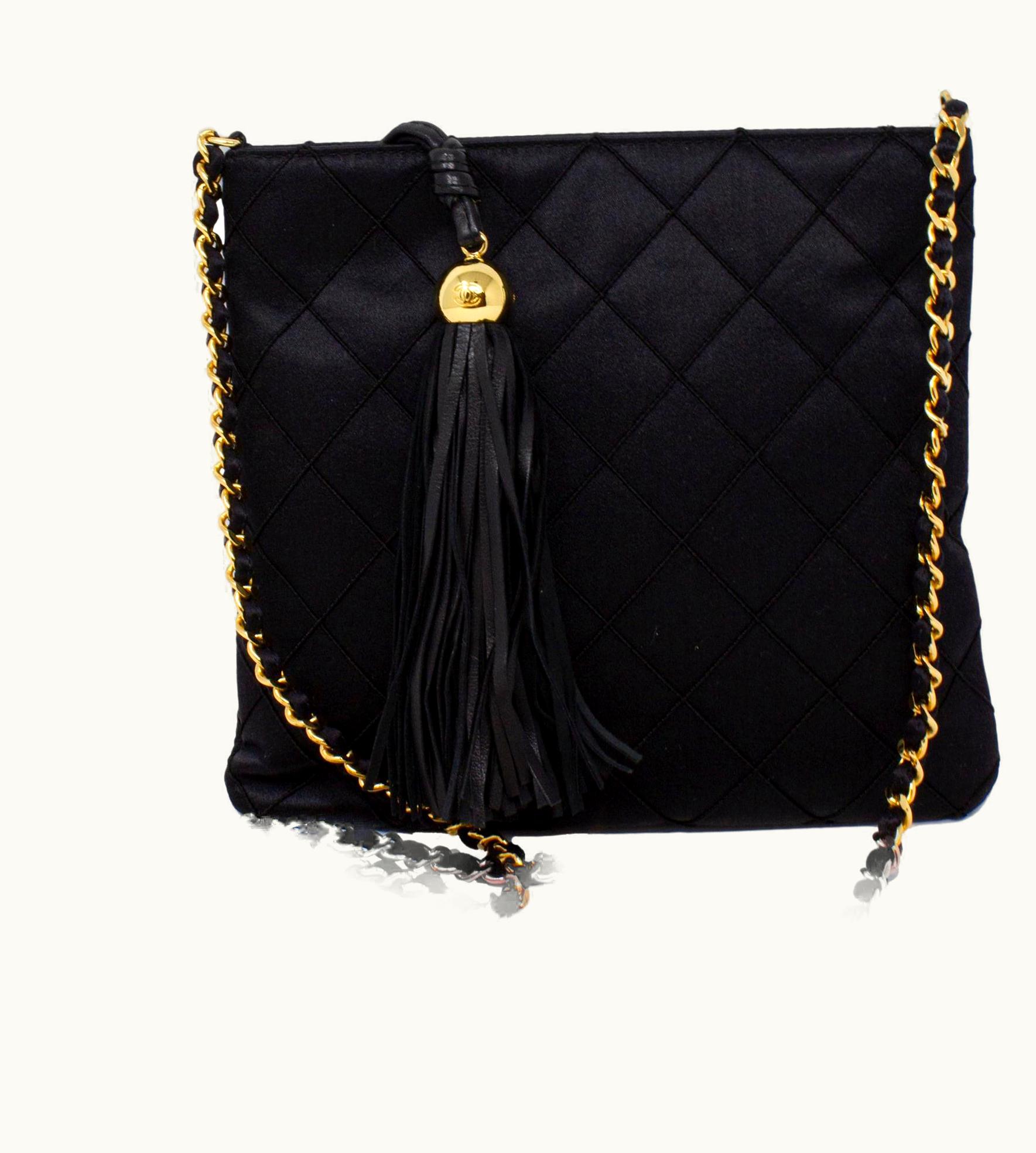 Chanel 90s Black Satin Quilted Crossbody | GLINT