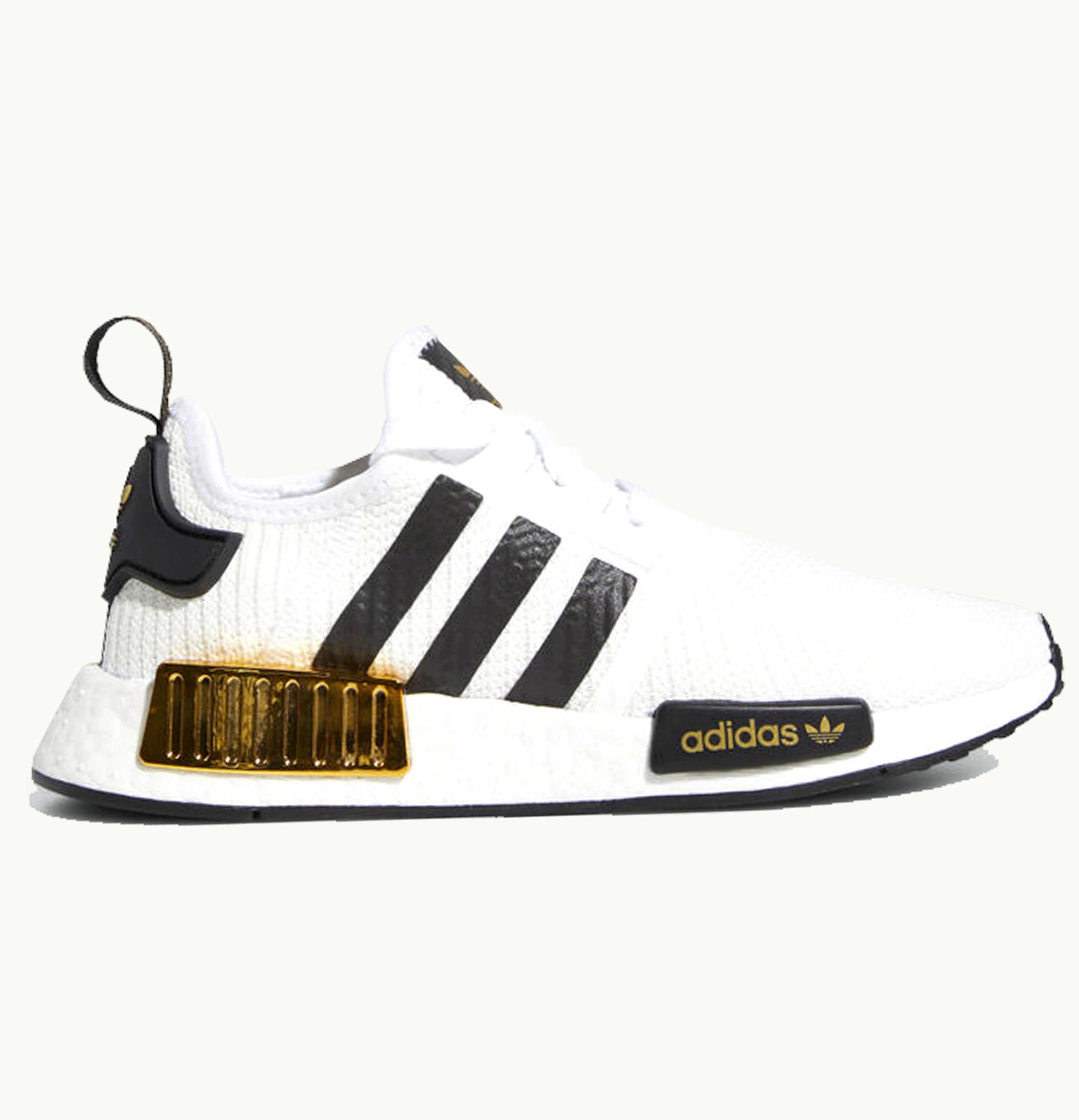 adidas NMD R1 White Black Gold Metallic GS | GLINT