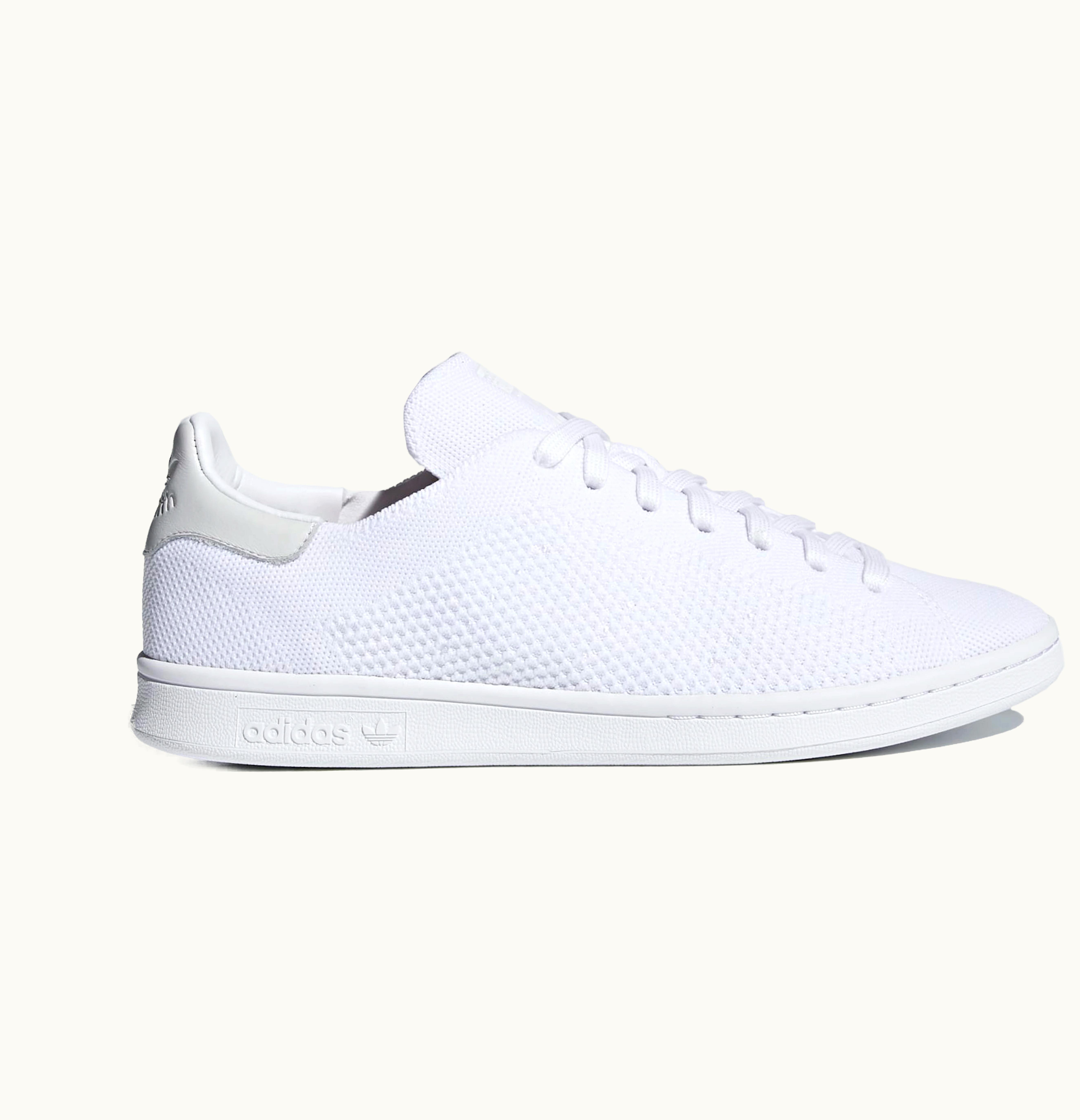 adidas Stan Smith Primeknit Triple White Leather Heel | GLINT