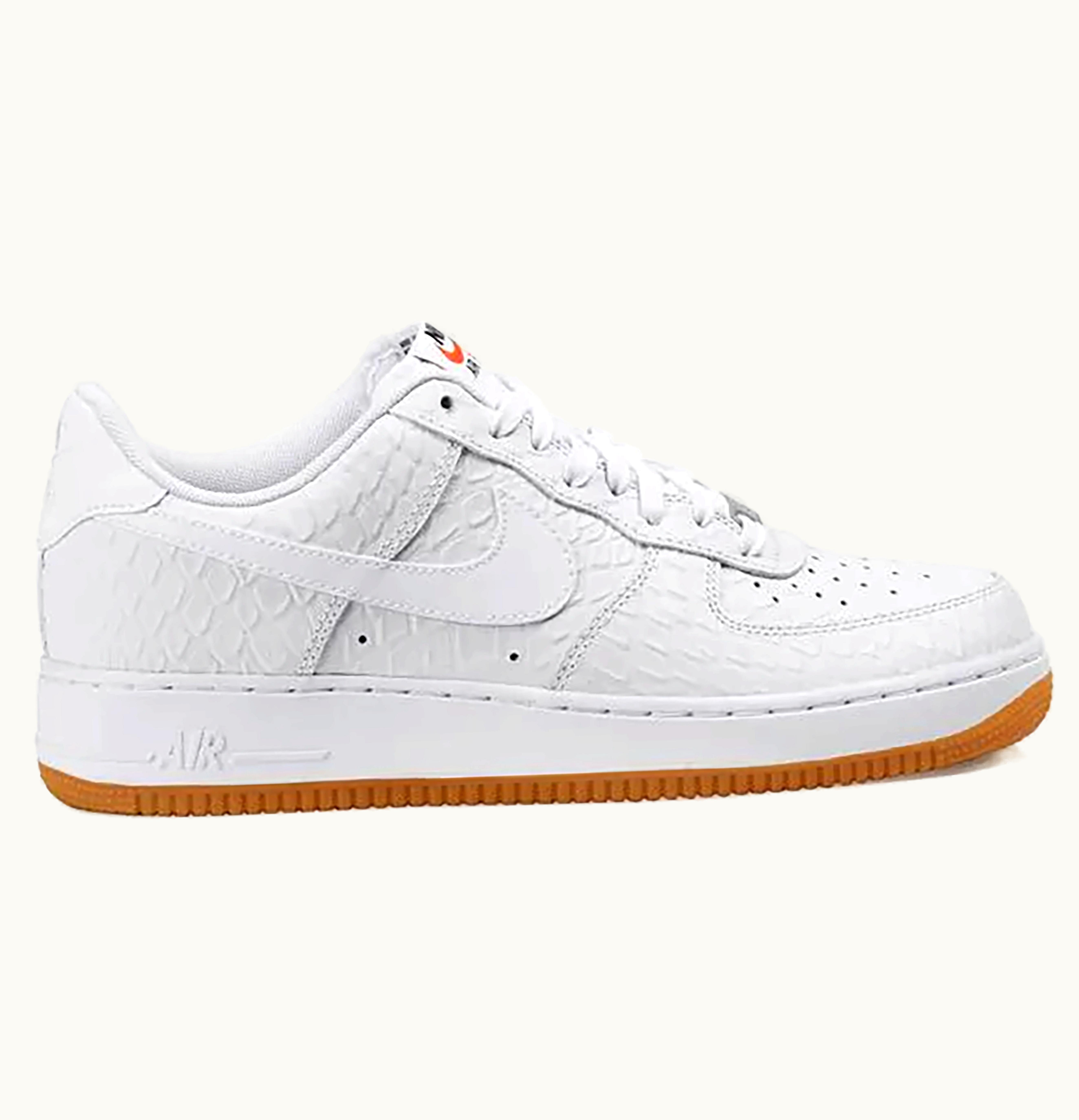 The Nike Air Force 1 Low Croc Gum White is a stylish and durable casual sneaker that offers a combination of comfort and support. This shoe features a white leather upper with a crocodile textured pattern that adds a touch of luxury to its overall design. The gum rubber outsole offers excellent traction and durability, making it suitable for everyday wear on different surfaces. The Air-Sole unit in the heel provides responsive cushioning for a comfortable ride. The low-top silhouette and lace-up closure provide a secure fit that adds to the overall style and support of the shoe. Whether you're running errands or heading out for a day of adventure, the Nike Air Force 1 Low Croc Gum White is a classic sneaker that will keep you looking and feeling great.