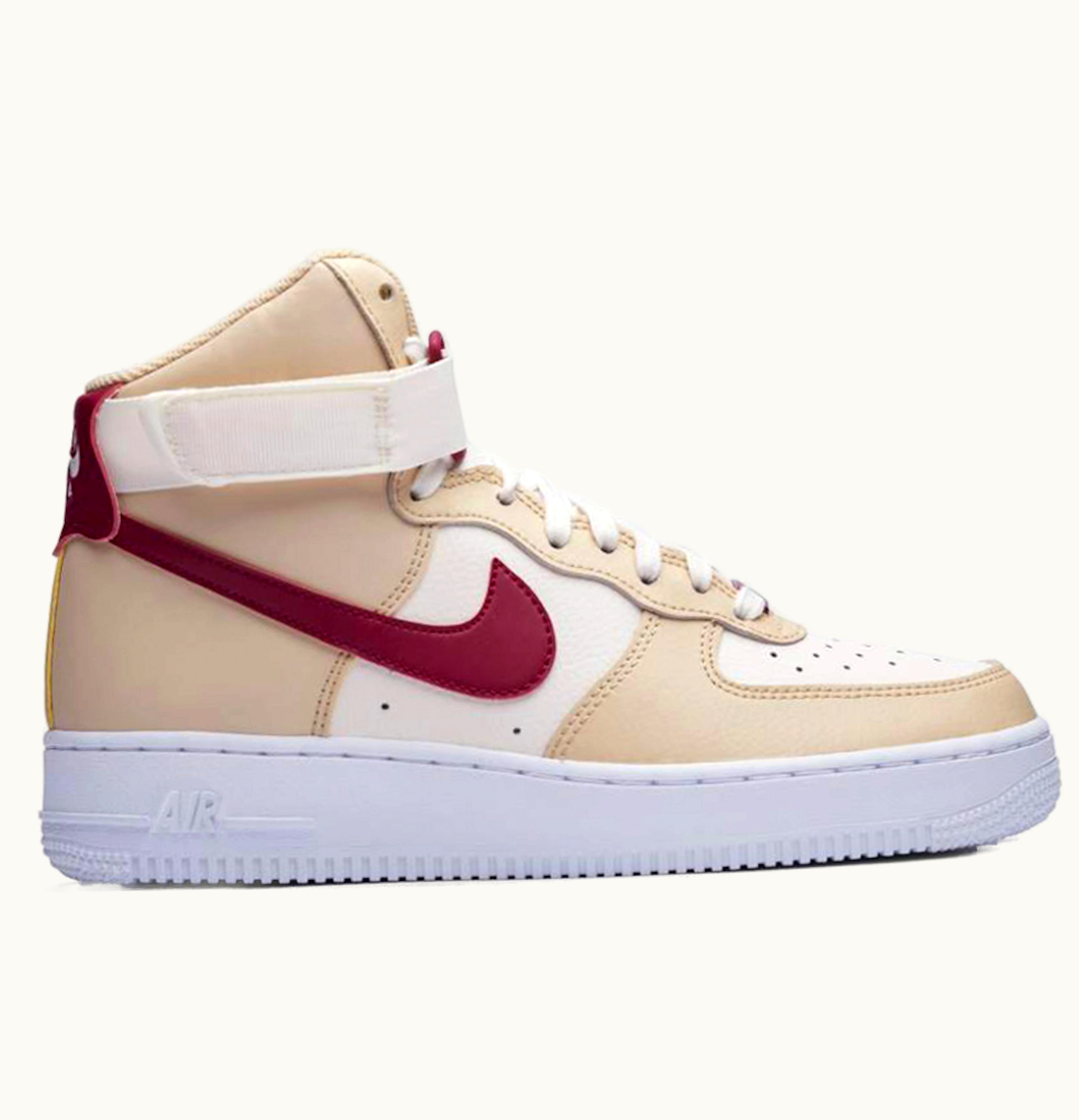 The Nike Air Force 1 High Noble Red (W) is a premium quality women's sneaker that combines iconic style with ultimate comfort. Crafted from soft leather, these shoes feature a vibrant noble red colorway, which adds a pop of color to any outfit. Along with the classic high-top design, they also have perforations on the upper part for breathability and a customizable fit. The shoes are equipped with Nike Air cushioning, providing superior comfort and impact protection, while the rubber outsole offer excellent traction on any surface. These shoes also include the signature Nike swoosh logo on the sides and the "Air" branding on the heel, adding a touch of sporty elegance. Whether you're dressing up or dressing down, the Nike Air Force 1 High Noble Red (W) is the perfect fashion statement to elevate your style. These shoes are suitable for everyday wear, casual outings, or even athletic activities.