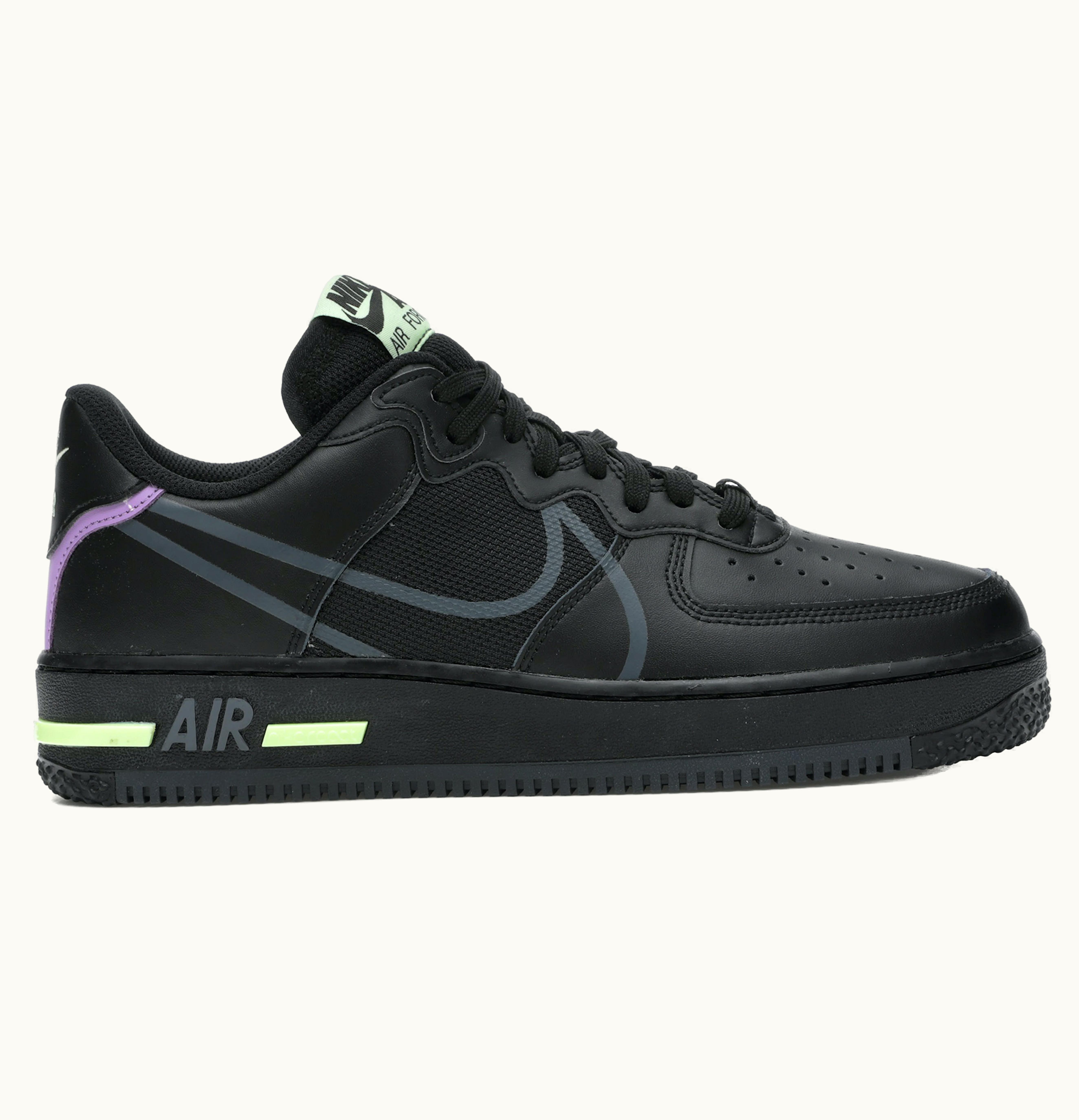 Nike Air Force 1 React Black Violet Star Barely Volt | GLINT