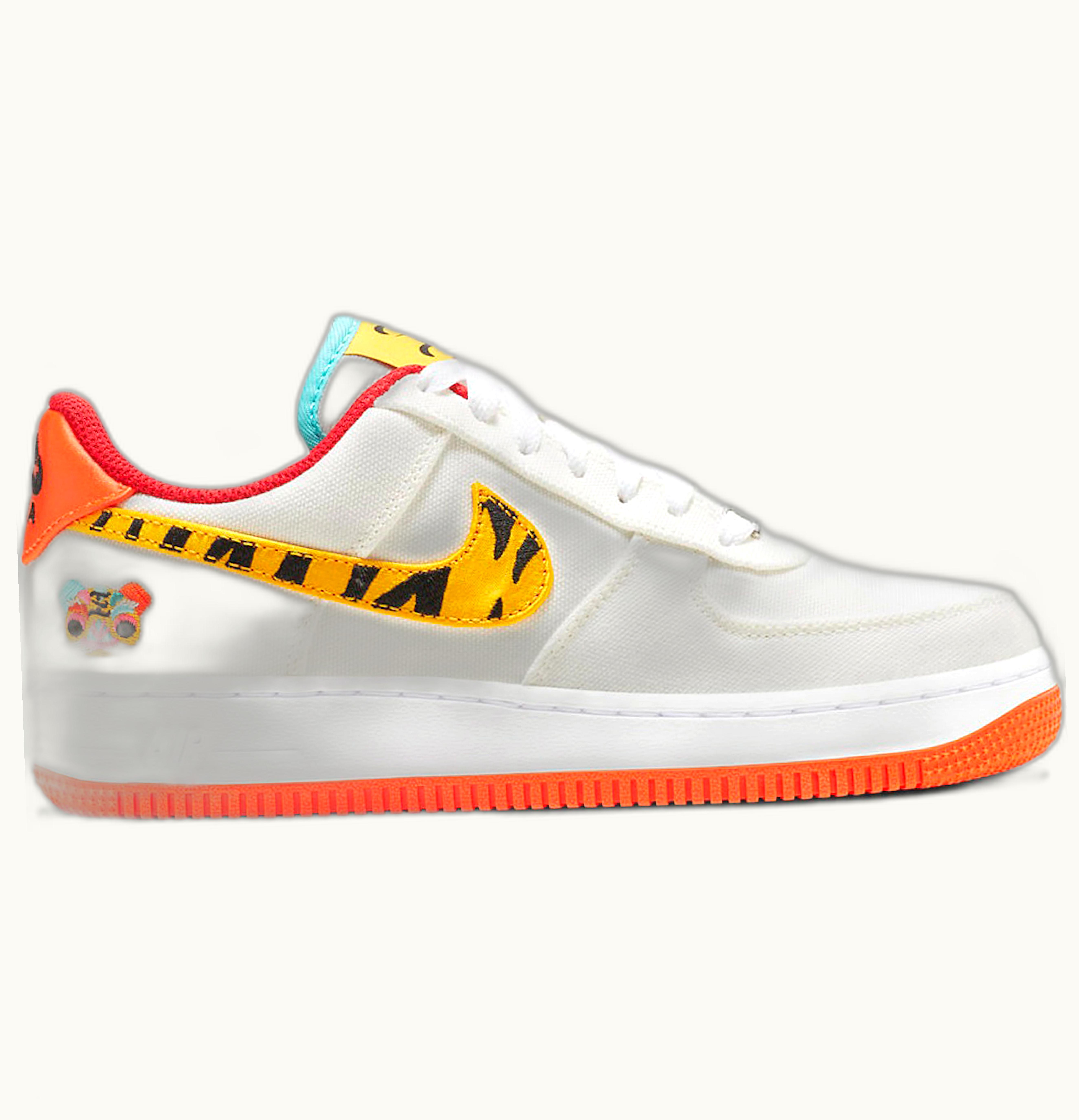 The Nike Air Force 1 Low '07 LX Year of the Tiger (W) is a limited edition sneaker designed exclusively for women. This shoe pays tribute to the Year of the Tiger in the Chinese Zodiac, with a mix of orange and black shades that symbolize power, passion, strength, and brightness. The upper features premium leather materials with a tiger-striped pattern and a textured feel, while the signature Swoosh logo on the sides is painted with metallic gold accents for a touch of luxury. The midsole has a white colorway and houses the patented Air-Sole unit for cushioning and support. Additionally, the outsole is made of durable rubber to provide reliable traction on any surface. These shoes are functional, stylish, and unique, making it a perfect choice for women who want to stand out from the crowd.