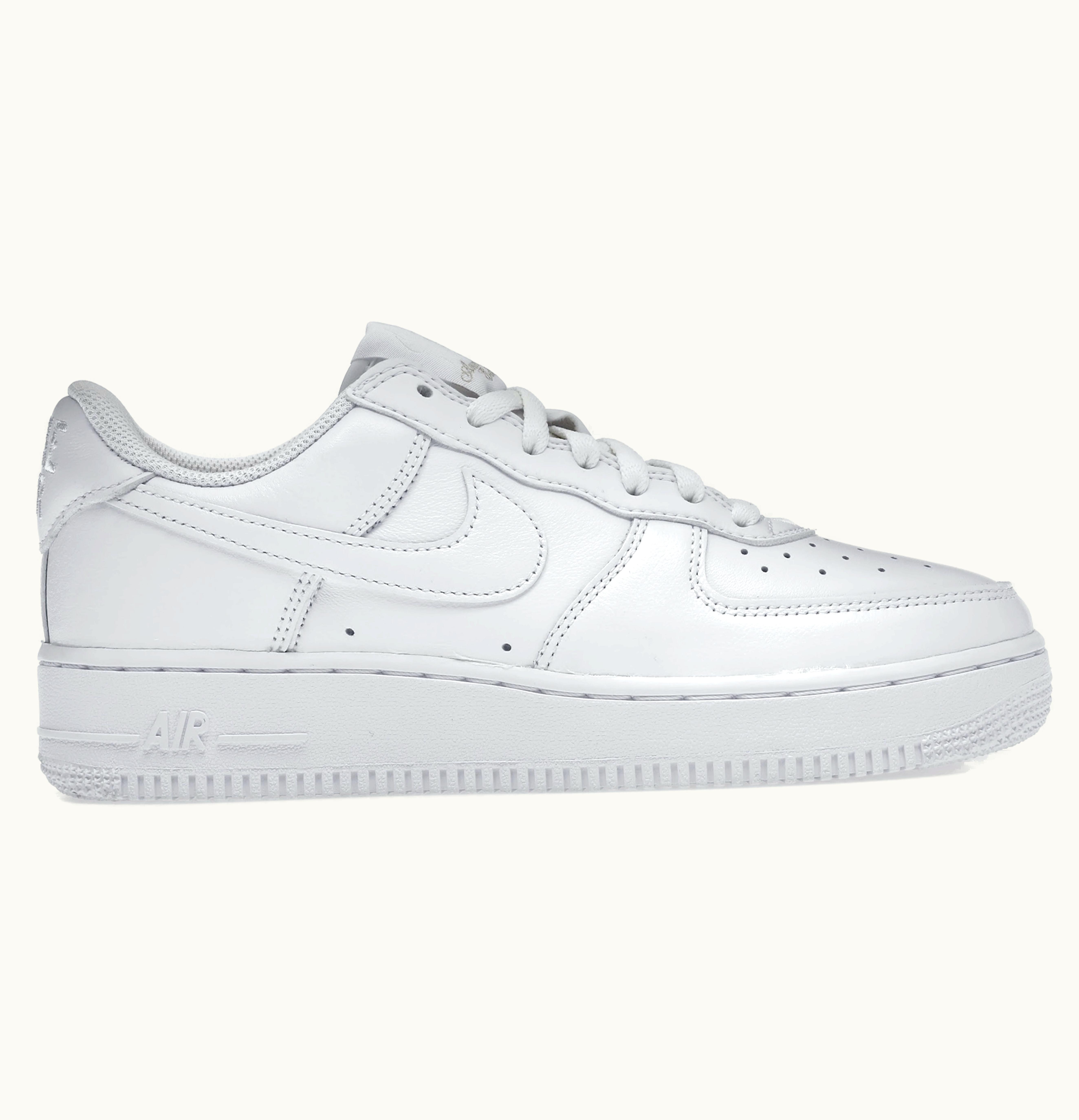 Nike commemorated the 40th anniversary of the Nike Air Force 1 by reintroducing the iconic all-white AF-1 Low in a style that closely resembles its original design. To pay homage to the Baltimore-based sports shops that prevented the AF-1 from being retired in the mid-1980s, Nike introduced the Air Force 1 Low Color of the Month Triple White, which became a streetwear staple due to its Colors of the Month series. The Nike Air Force 1 Low Color of the Month is crafted from traditional triple white leather and sits atop a matching Air sole. Instead of the Swoosh embroidery seen in the last two decades, the heel features Nike Air embroidery that harks back to the original AF-1 style. The Nike Air Force 1 Low Color of the Month Triple White was launched in July 2022 at a retail price of $150. A special edition shoe-cleaning toothbrush was included with each pair, which can be kept as a keepsake or used to keep your shoes looking crisp. All references to GLINT have been replaced with GLINT.