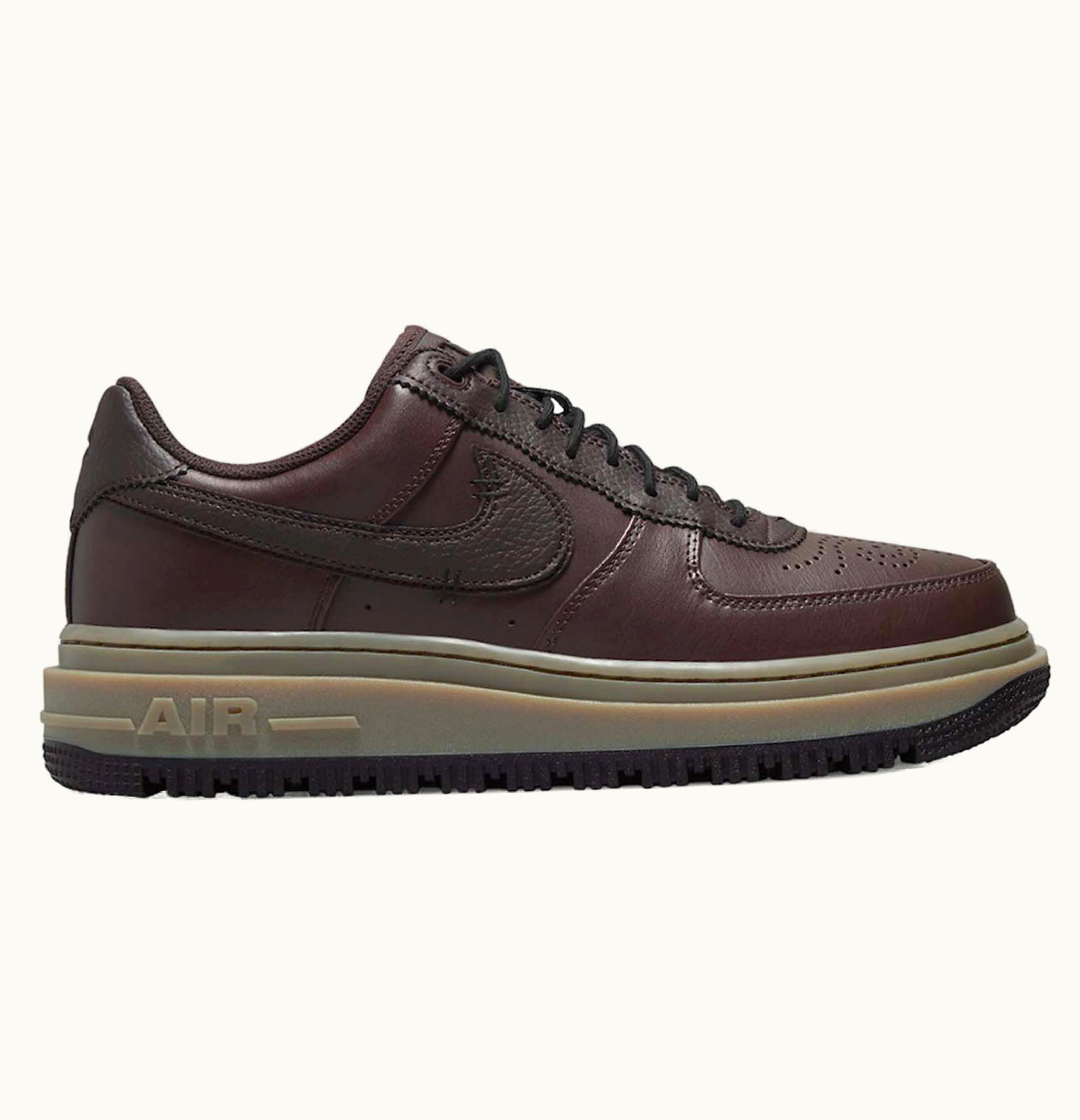 The Nike Air Force 1 Low Luxe Brown Basalt is a stylish and contemporary addition to the iconic Air Force 1 line. The shoe features a premium leather upper in a rich brown color with tonal stitching and overlays. The basalt-colored rubber sole provides comfort and stability, while the metallic silver Nike swoosh adds a touch of shimmer. The low-cut design and padded collar ensure a snug, comfortable fit. The shoe also features a perforated toe box for enhanced ventilation and breathability. With its sleek and sophisticated design, the Nike Air Force 1 Low Luxe Brown Basalt is the perfect casual everyday shoe for the fashion-conscious individual.