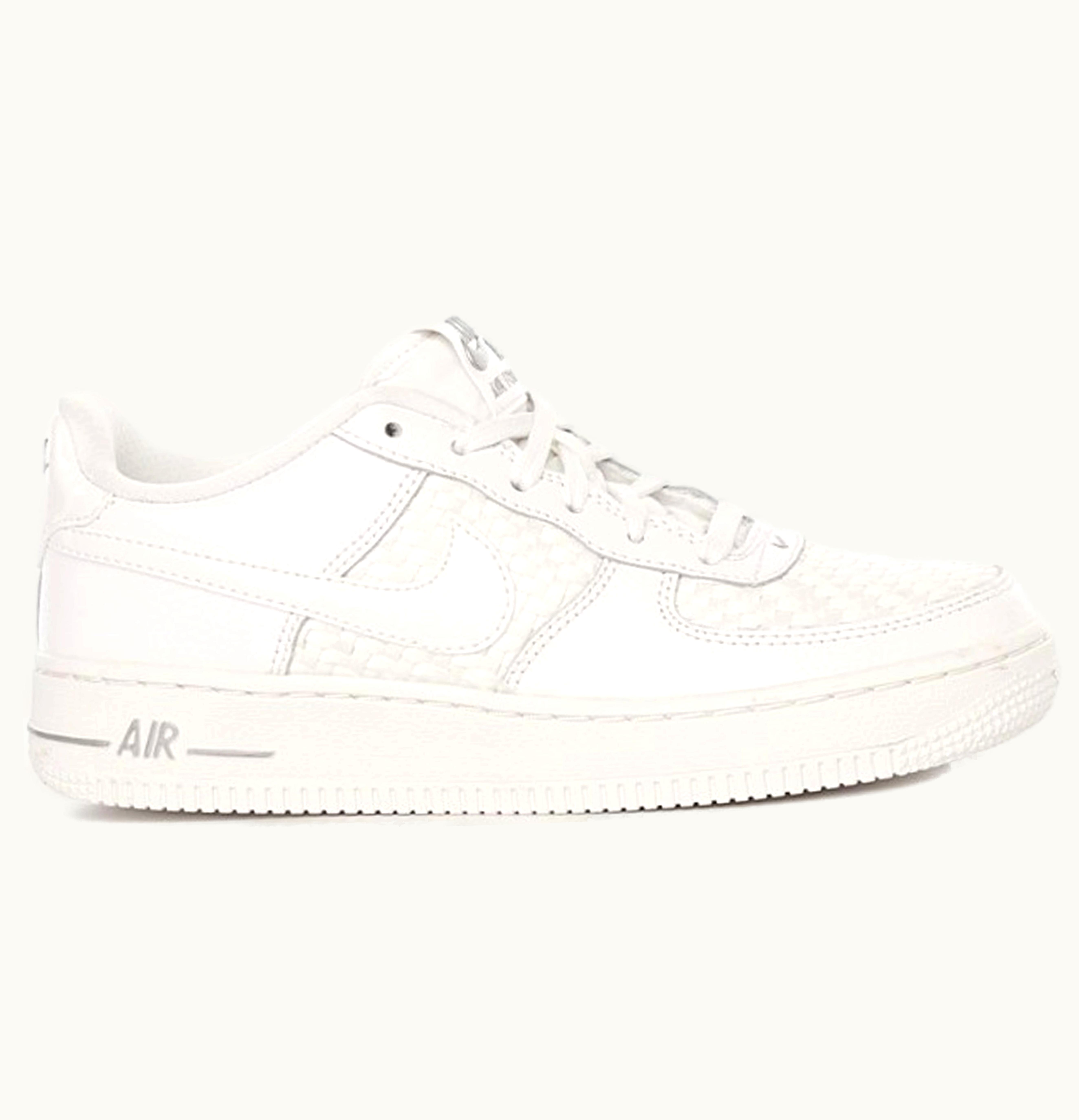 Nike Air Force 1 Low Triple White Leather Woven GS | GLINT