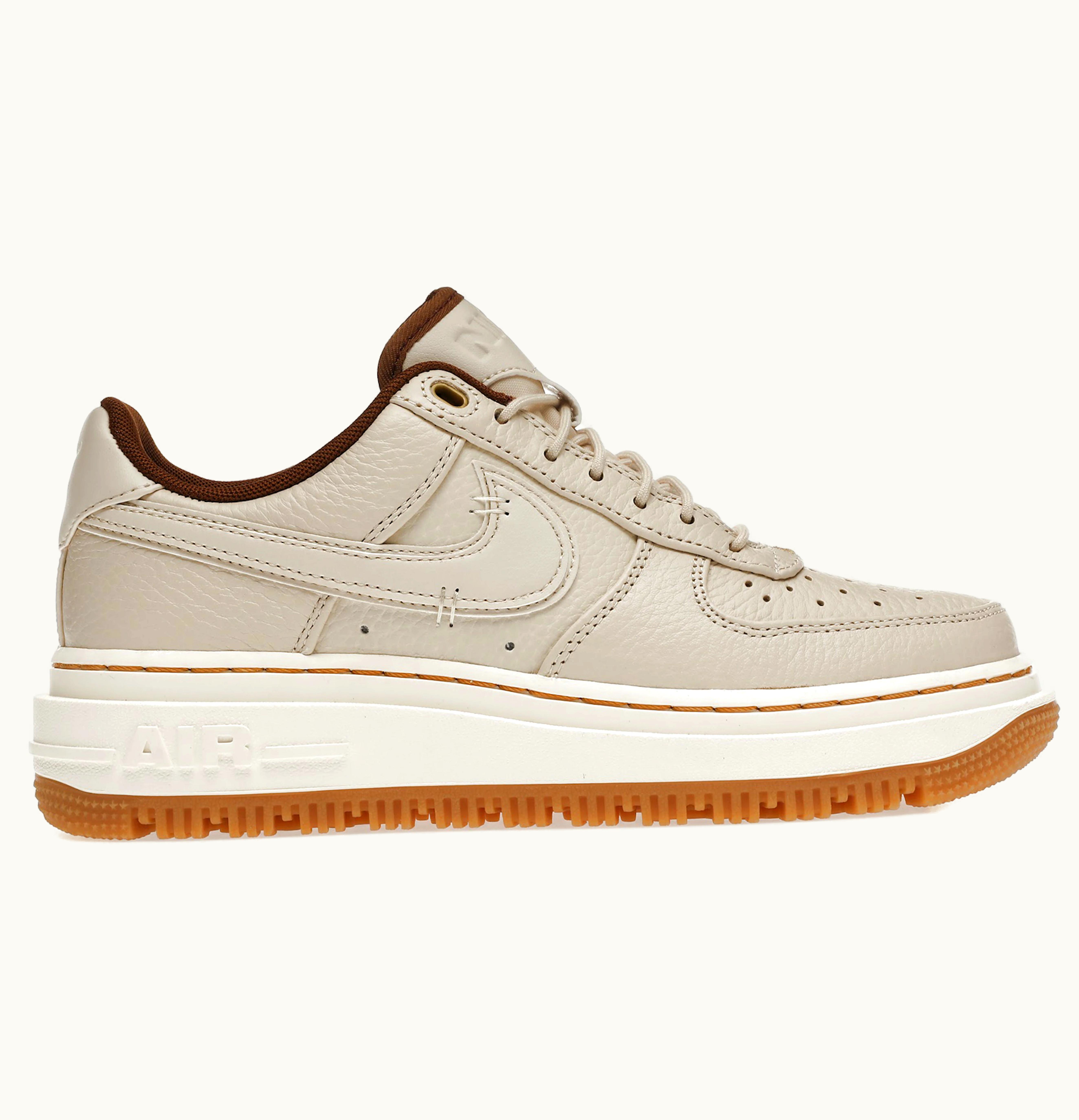 The Nike Air Force 1 Low Luxe Pearl White is a premium iteration of the iconic Air Force 1 Low silhouette. It features a luxurious and sleek white leather upper with a pearlized finish, giving it a stunning iridescent look. The shoe also holds an embossed Nike Swoosh on the side and a metallic silver AF1 tag on the heel for added detailing. The shoe is equipped with the brand's signature Air cushioning technology in the sole, providing ultimate comfort and support. The Nike Air Force 1 Low Luxe Pearl White offers a versatile style that can easily complement any outfit with its clean and sophisticated look.