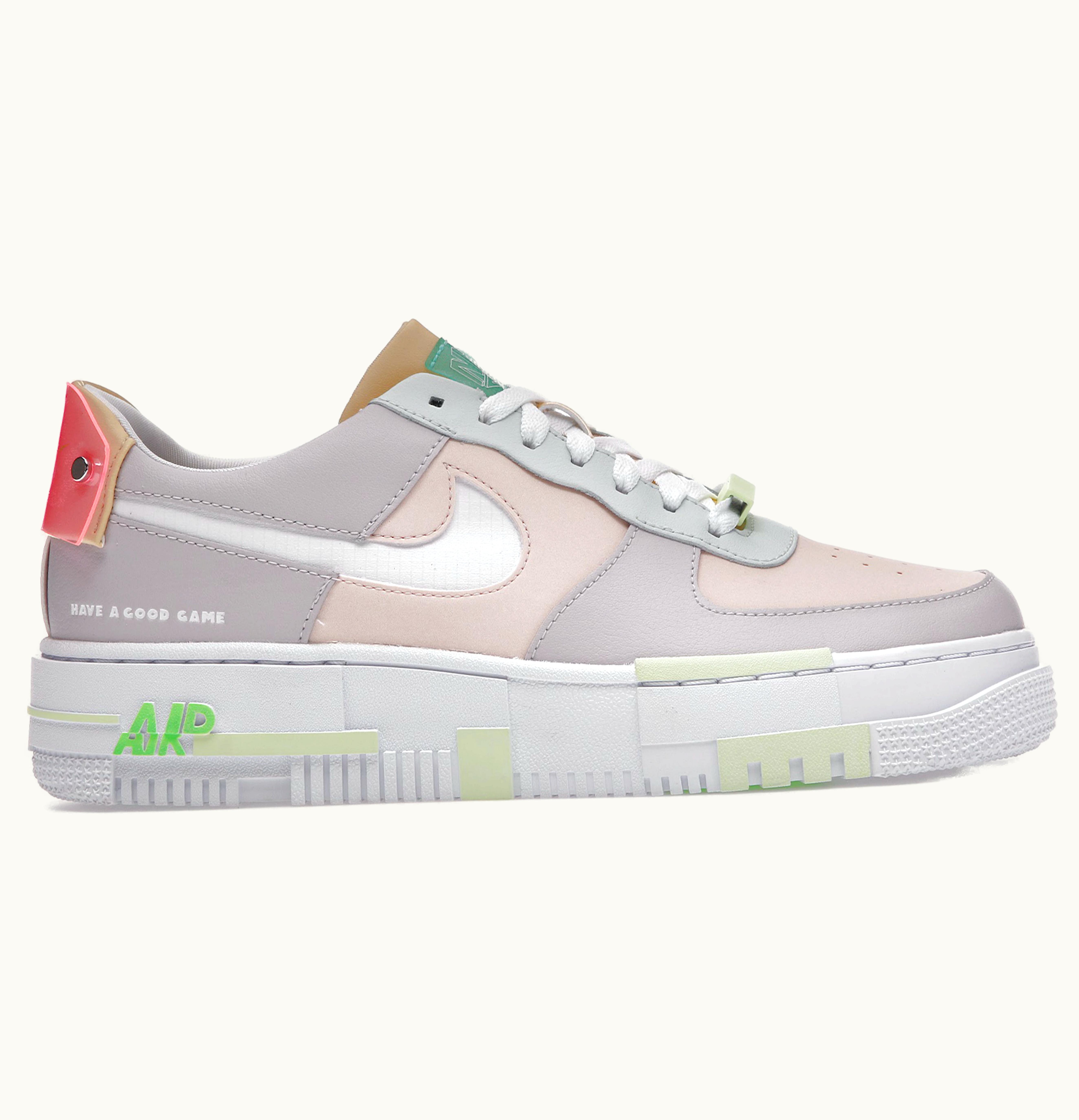 The Nike Air Force 1 Low Pixel LPL Have a Nice Game (W) is a women's sneaker designed to provide comfort, support and style on and off the court. The upper is made of a smooth leather material with a white and black colorway, featuring a unique pixelated design on the side panels and heel. The LPL logo is embroidered on the tongue, adding a touch of authenticity to the shoe. The sole features Nike's classic Air Unit technology for added cushioning and the outsole is made of durable rubber with a waffle pattern for traction. Whether you're playing basketball or just looking for a stylish and comfortable shoe to wear, the Air Force 1 Low Pixel LPL is the perfect choice.