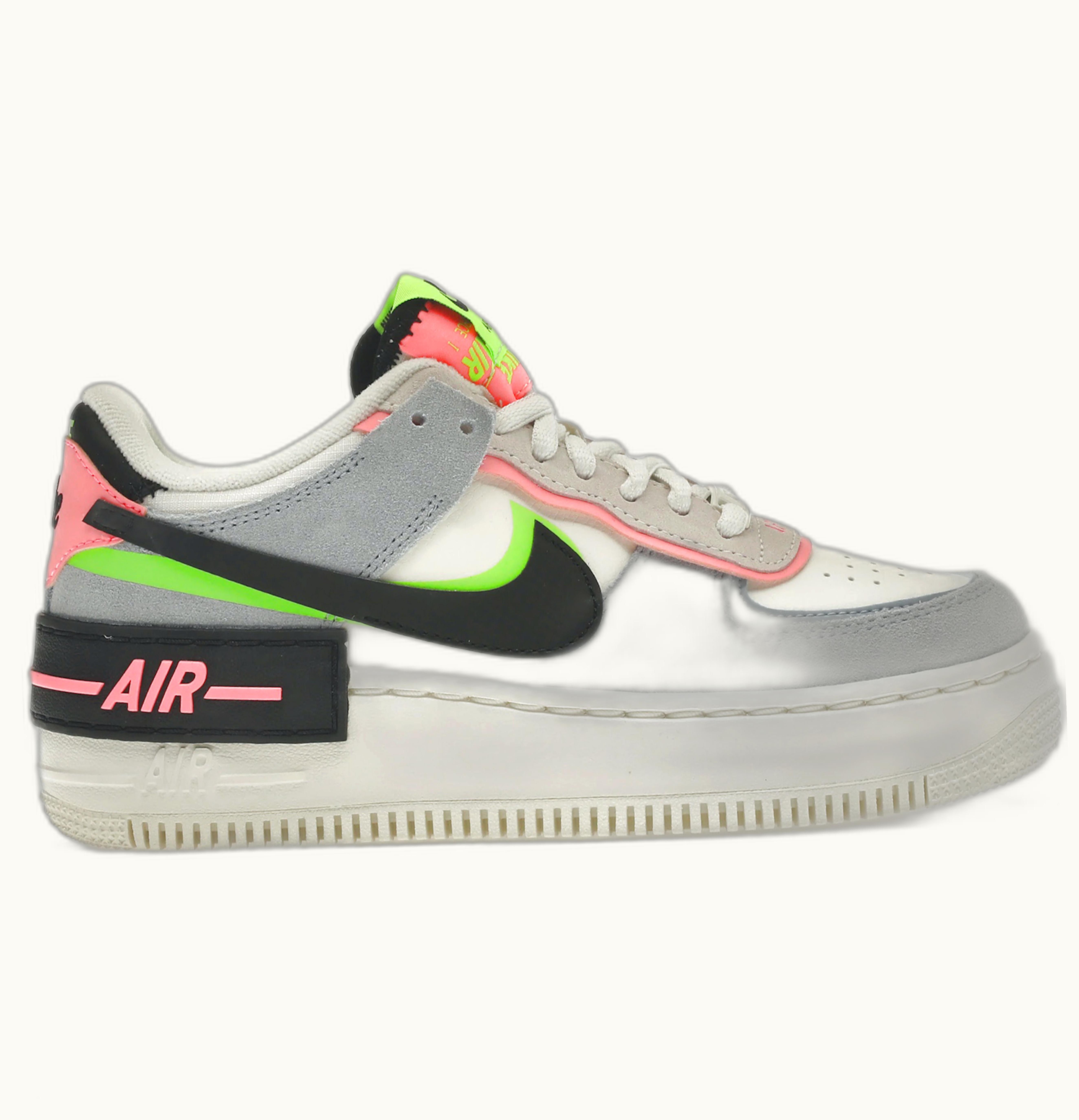 The Nike Air Force 1 Low Shadow Sunset Pulse (W) is a women's fashion sneaker that features a vibrant and colorful design inspired by a sunset. The upper combines a mix of materials, including leather, suede, and mesh, to create a layered, shadow-like effect that adds depth and texture to the shoe. The color palette consists of shades of orange, pink, and purple, with black accents and a white midsole. The Air Force 1 Low Shadow also includes classic Nike branding on the tongue, heel, and side panel, as well as a cushioned footbed and durable rubber outsole for comfort and traction. This sneaker is both stylish and functional, making it a great addition to any wardrobe.
