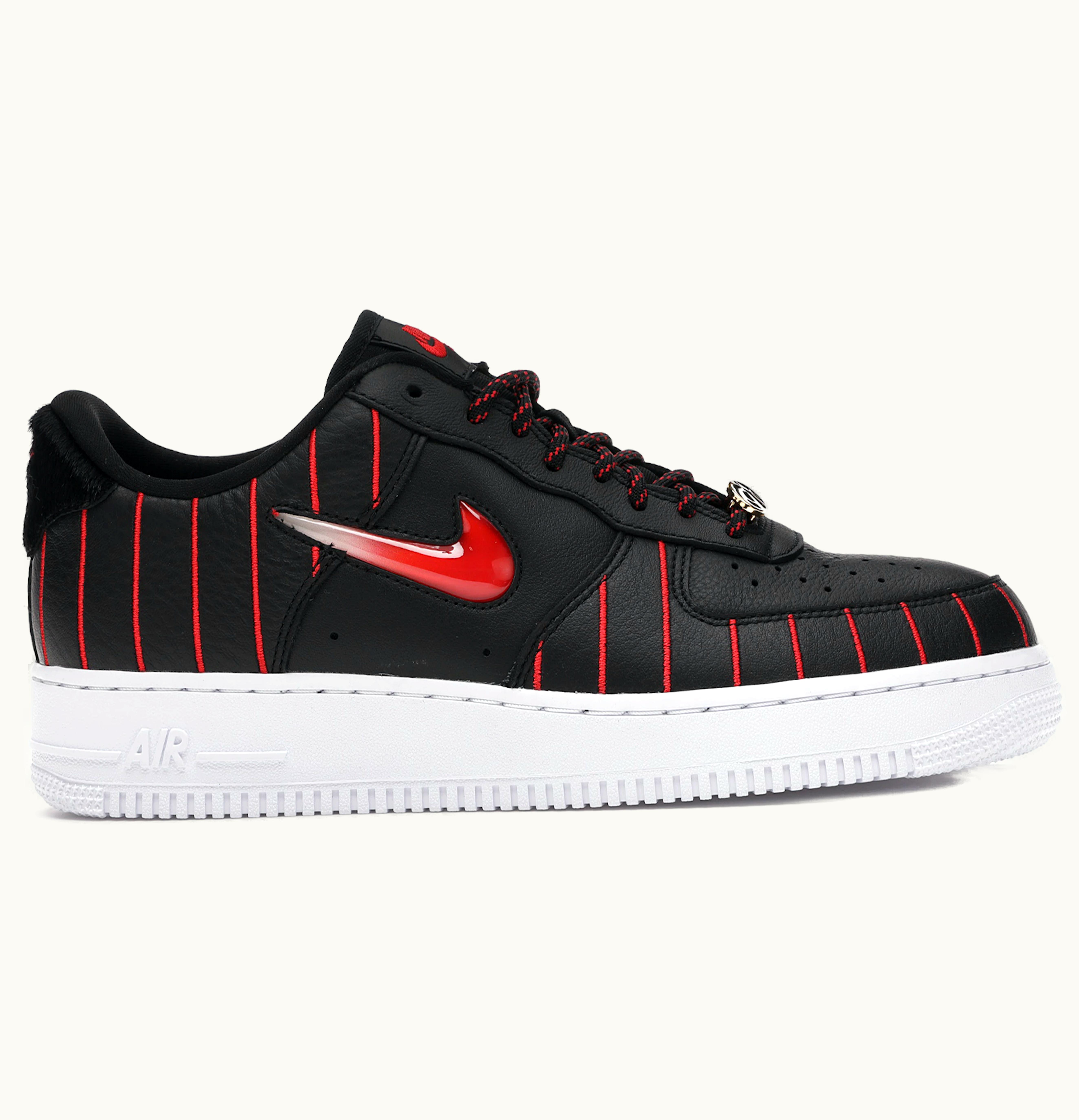 The Nike Air Force 1 Low Jewel Chicago All-Star (2020) (W) is a stylish women's sneaker designed by Nike. With a white leather upper, the shoe features a metallic silver tongue and a navy blue jewel Swoosh on the side. Additional detailing includes a red velvet sockliner, Chicago-inspired graphics on the insole and heel, and a translucent outsole with more Chicago-inspired graphics underneath. Made with Nike's signature Air cushioning technology, these sneakers offer comfort and support for everyday wear. The Nike Air Force 1 Low Jewel Chicago All-Star (2020) (W) is a limited edition release and is a must-have for any sneaker collector or Chicago sports fan.