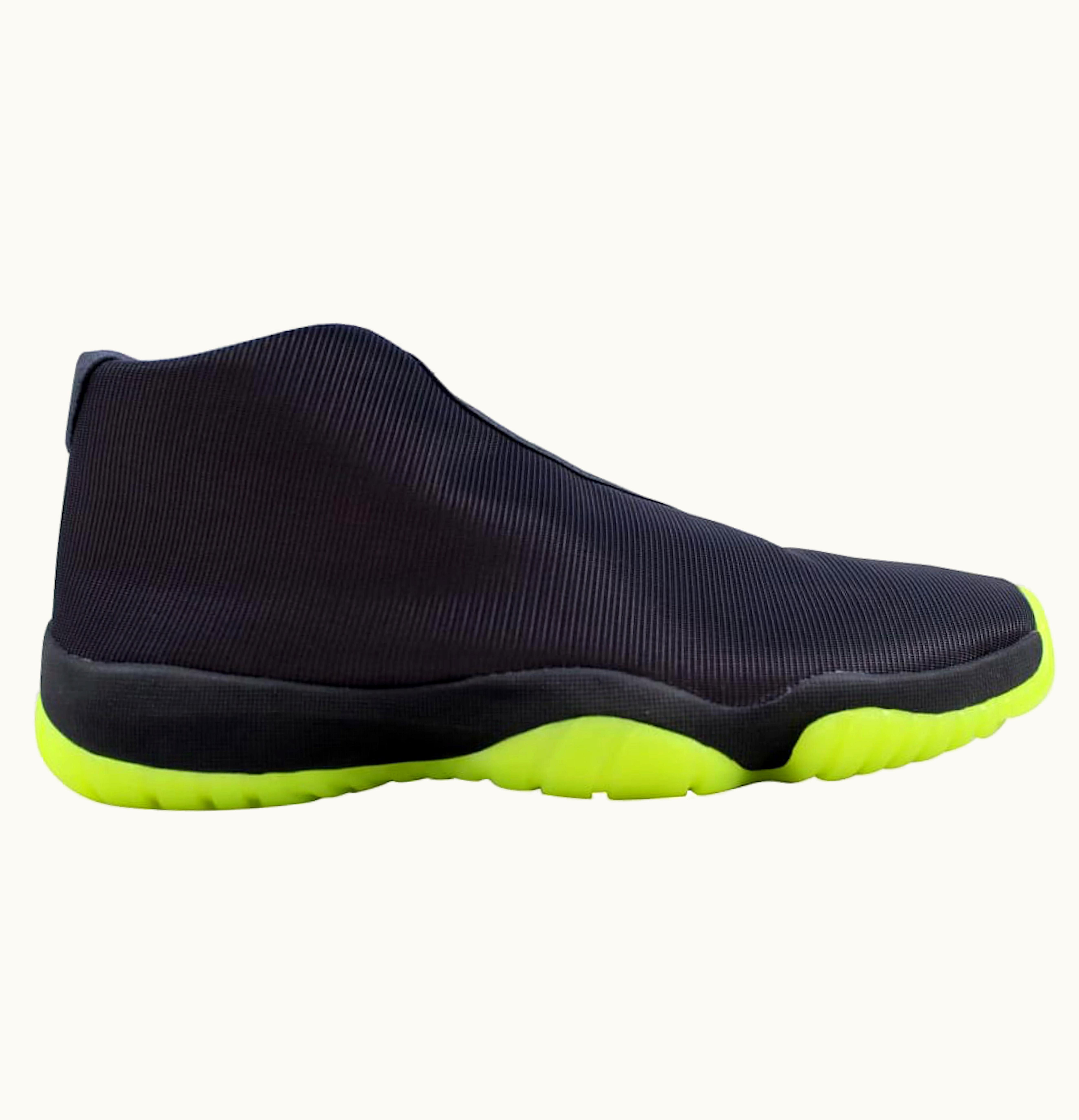 The Jordan Future Dark Grey Volt is a fashionable and comfortable men's sneaker that features a sleek and striking design. It boasts a dark grey woven textile upper that adds a touch of sophistication to the shoe's overall look. The sneaker also features a unique lacing system that can be adjusted for a customizable fit, as well as a volt-colored Jumpman logo on the tongue. The Jordan Future Dark Grey Volt is built for comfort, featuring a lightweight and breathable design that keeps feet cool and dry. The shoe also has a Phylon midsole that provides cushioning and support for a comfortable stride. These sneakers are perfect for both casual wear and athletic pursuits. They're versatile enough to be worn with jeans, shorts, or joggers, and their modern design will surely turn heads. The Jordan Future Dark Grey Volt is a must-have for anyone who wants to stay comfortable and fashionable at the same time.
