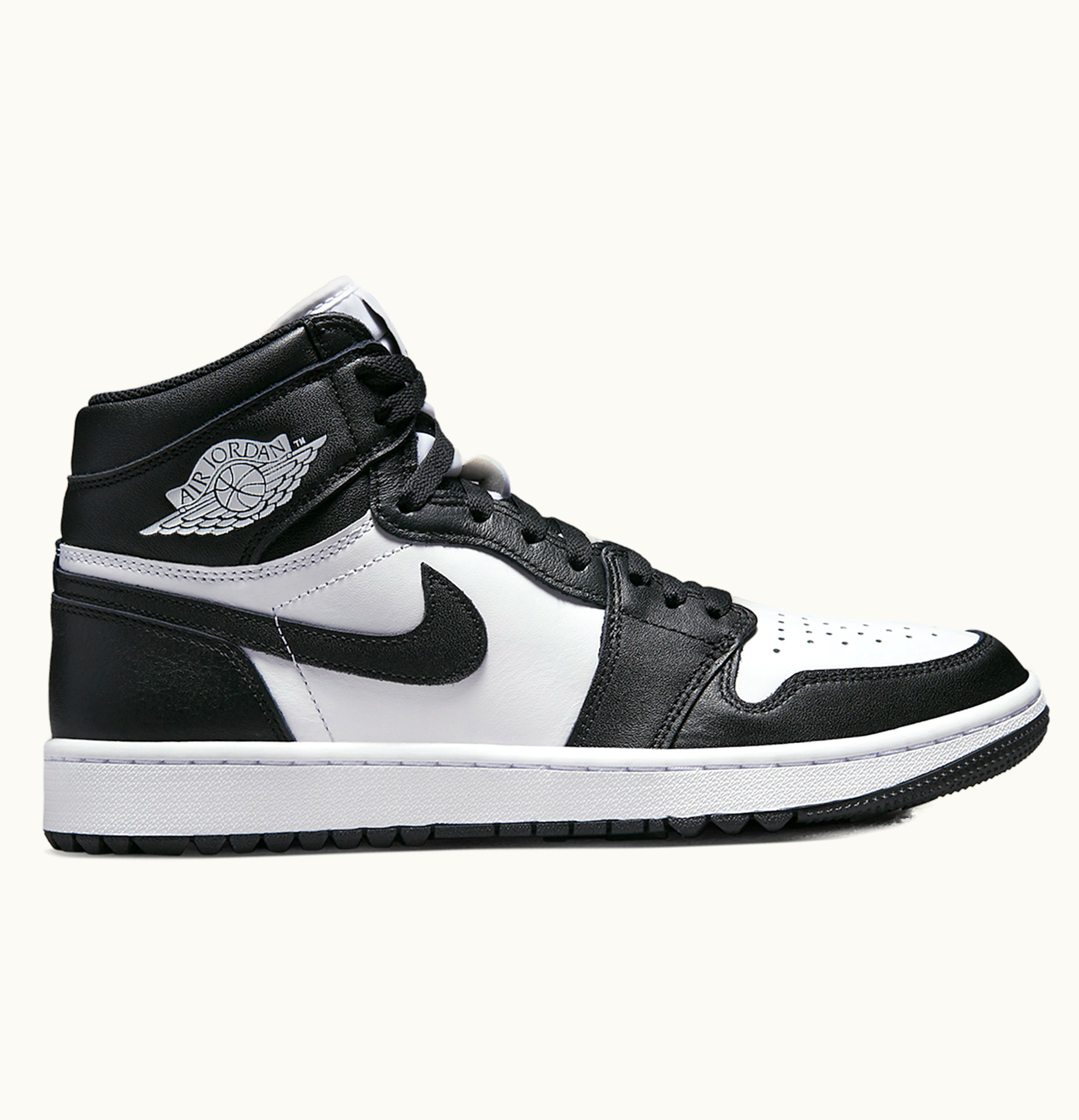 The Jordan 1 High Golf Black White is a stylish and functional shoe designed for golf enthusiasts. The shoe combines the classic Jordan 1 silhouette with modern elements, making it a versatile choice for a range of golfing environments. The shoe features a full-grain leather upper with a perforated toe box for breathability and comfort. The midsole features a soft, responsive foam for cushioning, while the outsole is made of custom-designed cleats that provide excellent traction on the golf course. The shoe also features a Jumpman logo on the tongue and Nike Air branding on the heel for a classic Jordan touch. With its sleek black and white colorway, the Jordan 1 High Golf Black White is a sophisticated choice for golfers who want a shoe that looks as good on the course as it feels.