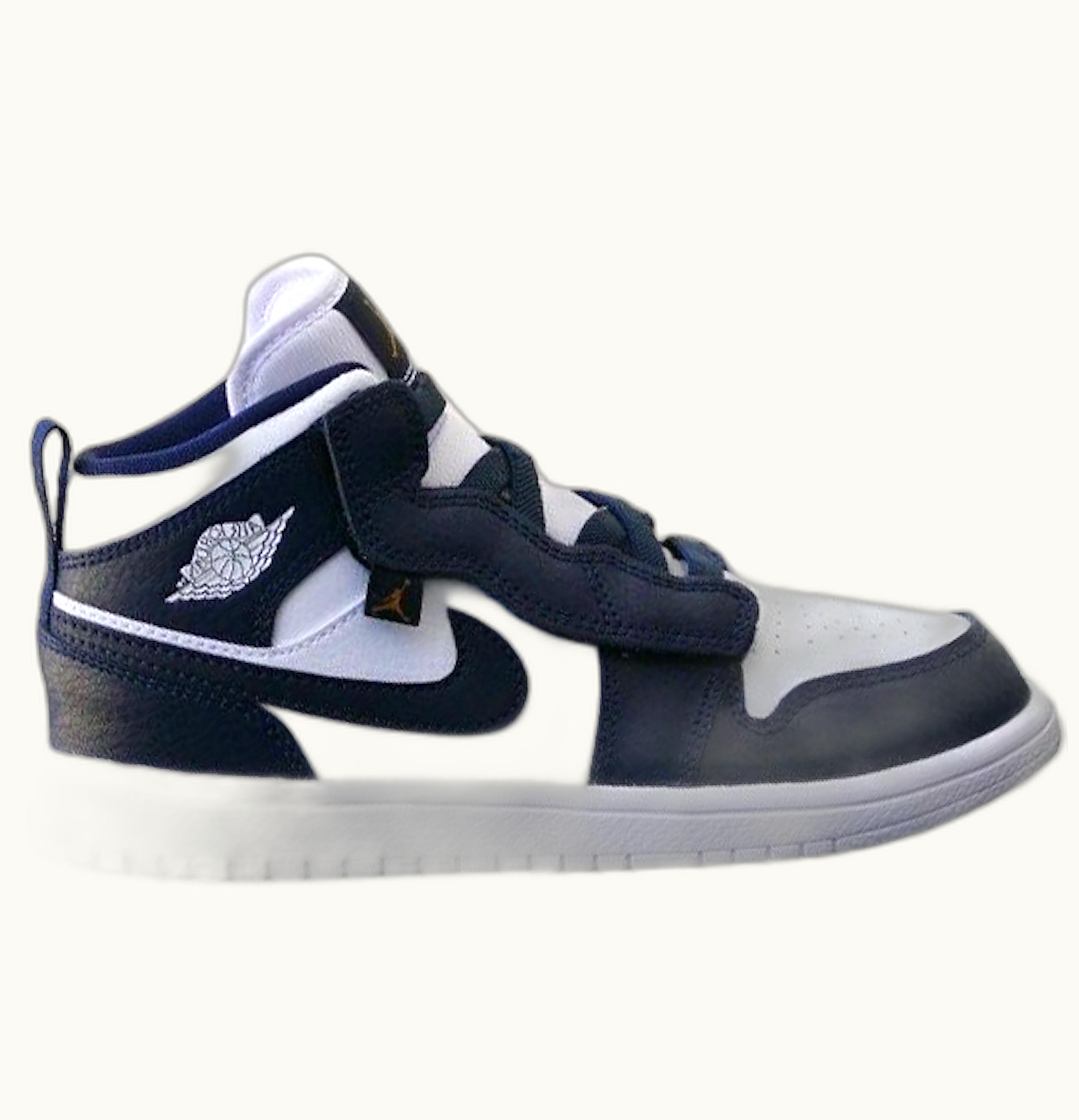 The Jordan 1 Mid Alt White Metallic Gold Obsidian (PS) is a stylish and comfortable pair of sneakers designed for kids. The upper part of the shoe is made of high-quality leather and synthetic material, which provides durability and support. The white base color of the shoe is complemented with obsidian blue and metallic gold accents, which gives it a luxurious appeal. The touch-fasten strap on the vamp offers an adjustable fit, making it easier for kids to put them on and take them off. The rubber outsole provides traction and grip, ensuring stability and preventing slips. Overall, the Jordan 1 Mid Alt White Metallic Gold Obsidian (PS) is a perfect shoe for kids who want a stylish and comfortable pair of sneakers that they can wear every day.
