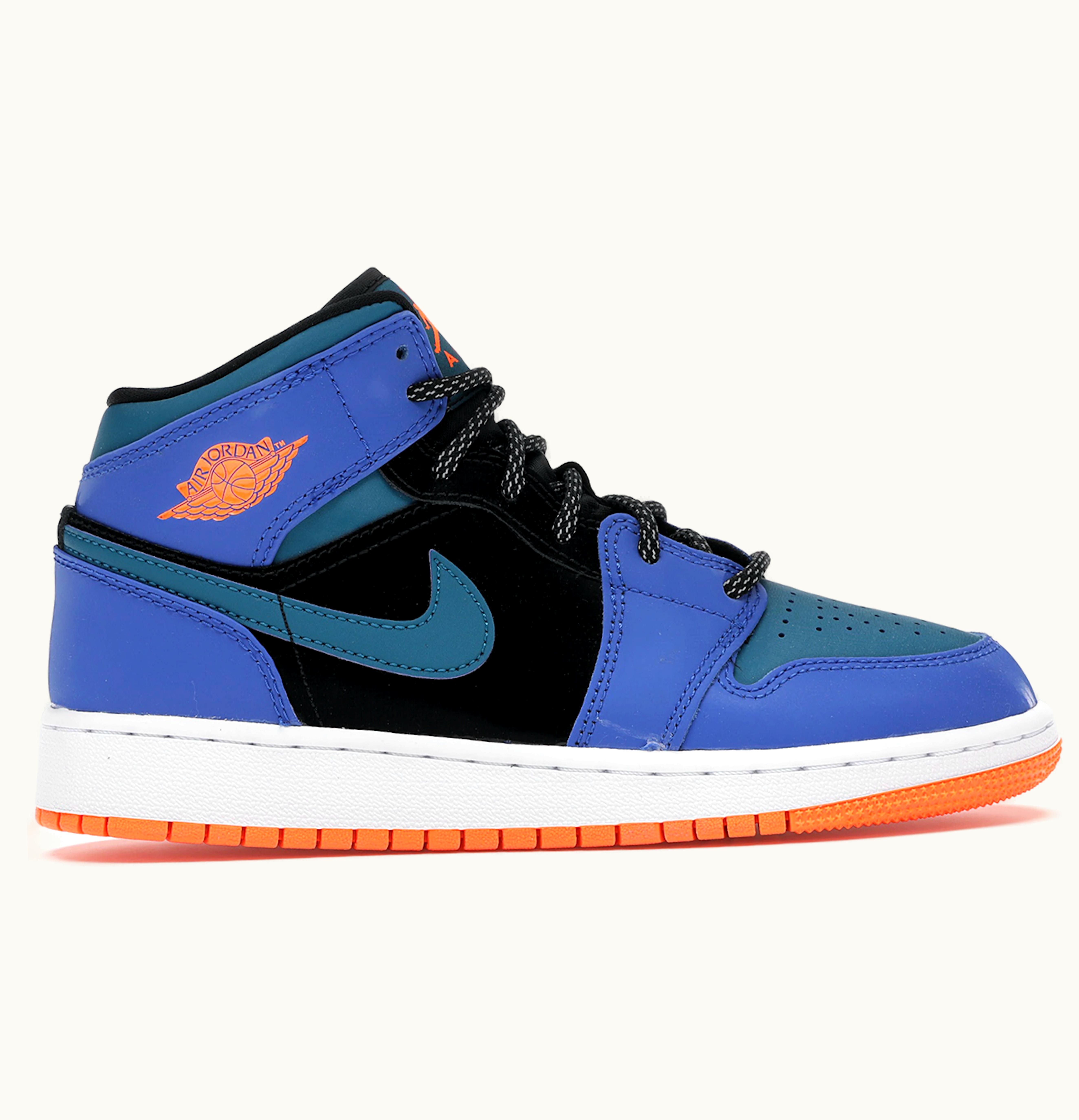 The Jordan 1 Mid Racer Blue Green Abyss (GS) is a stylish and comfortable shoe perfect for kids who love to play basketball or enjoy an active lifestyle. Featuring a vibrant combination of racer blue, green abyss, and white, the shoe is made from high-quality leather and textile materials that provide durability and comfort. The shoe has a mid-top design that offers both ankle support and flexibility, making it ideal for quick movements on the court or on the playground. The lace-up closure adds extra security and adjustable fit, while the signature Jordan branding on the tongue and heel tab gives it a classic look. With its cushioned insole and padded collar and tongue, the Jordan 1 Mid Racer Blue Green Abyss (GS) ensures maximum comfort during extended wear. The rubber outsole with traction pattern provides excellent grip and stability on any surface, ensuring kids can easily move and change directions while playing. Overall, these shoes are perfect for kids who want to look stylish, feel comfortable, and perform their best in any active setting.