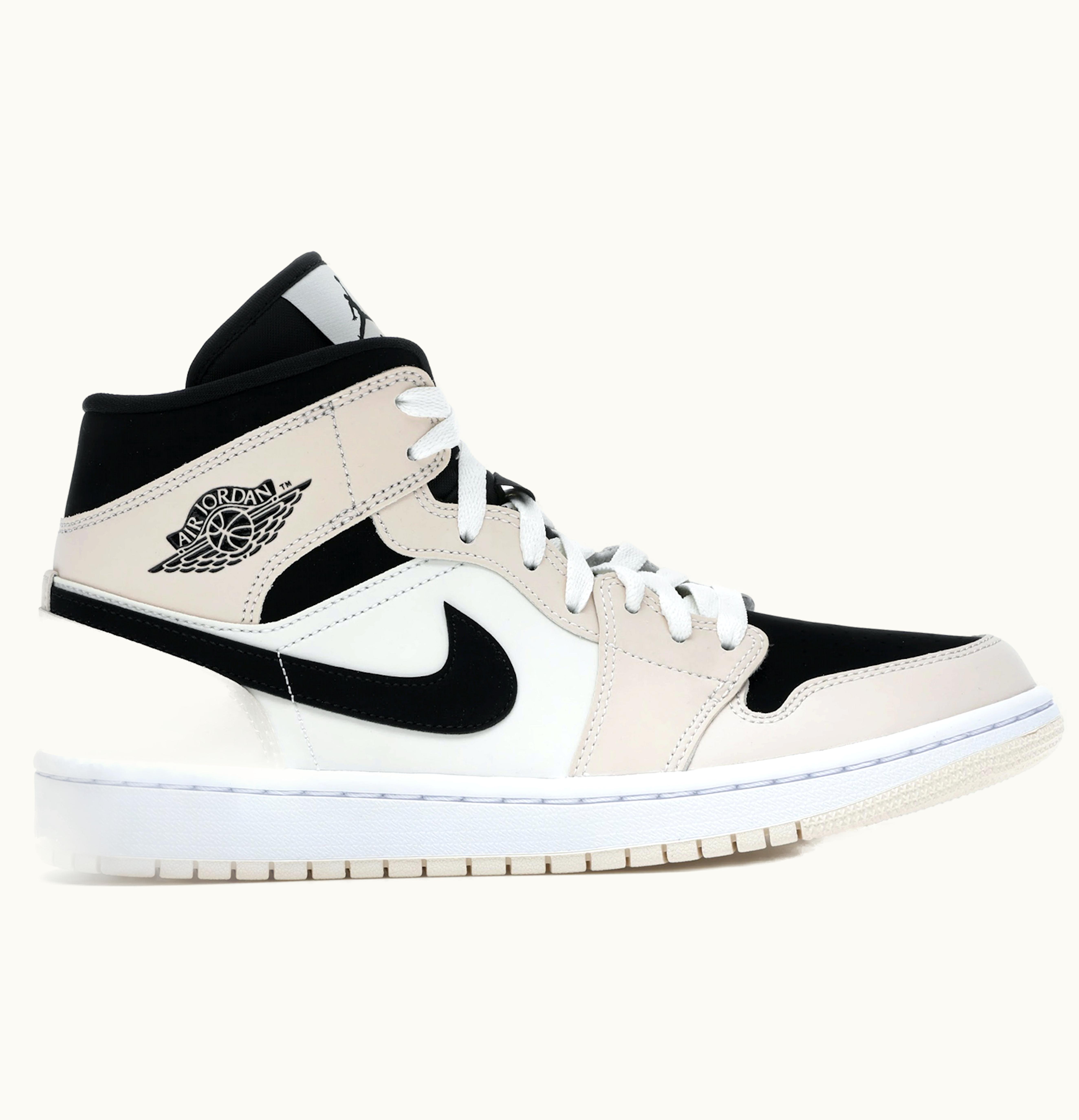 In 2020, GLINT brought back the Air Jordan brand with a fresh twist in the form of the women's exclusive Air Jordan 1 Mid Barely Orange. The shoe's upper combines white, tan, and black hues to create a perfect balance. Black highlights the Nike and Air Jordan logos, as well as other accents, while tan adds a middle ground between the white soles and laces and black accents. The shoe was released in October 2020 and was available for $115 on GLINT.