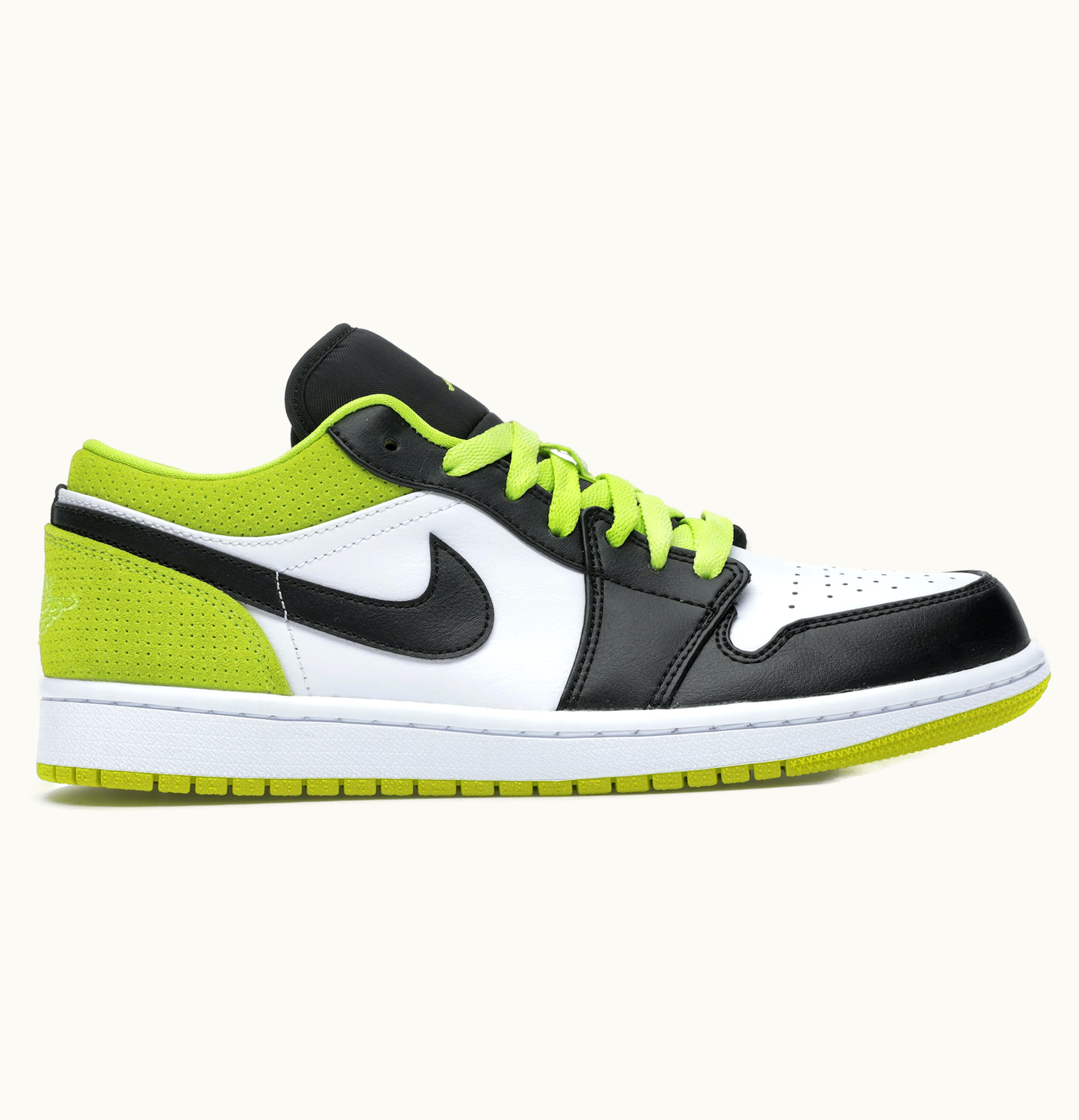 The Jordan 1 Low Black Cyber is a stylish and sophisticated sneaker that features a sleek black leather upper with cyber accents. The shoe's design is inspired by the original Air Jordan 1 High and incorporates the iconic Jordan Wings logo on the heel tab. It also features a traditional lace-up closure for a secure and comfortable fit. The shoe's midsole is white, adding a stylish contrast to the black and cyber upper, and it is finished with a durable rubber outsole that provides excellent traction on any surface. Whether you're hitting the court or the streets, the Jordan 1 Low Black Cyber will keep you looking and feeling your best.