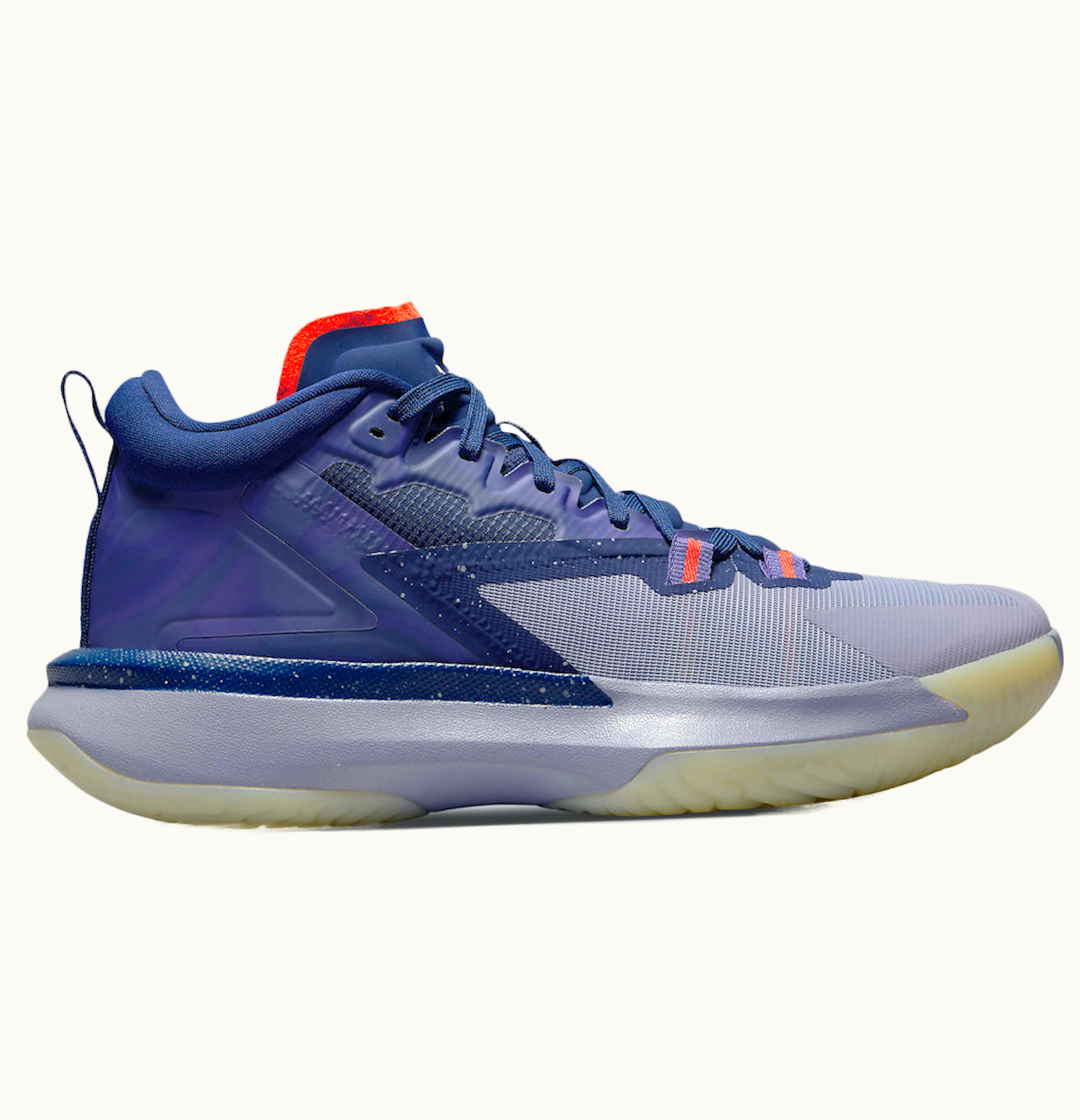 The Jordan Zion 1 Blue Void Fierce Purple is a high-performance basketball shoe designed for the dynamic player on the court. The upper is made of breathable synthetic textiles and premium leather overlays, delivering support and durability. The shoe features a unique lacing system for a secure and adjustable fit. The midsole is made of Zoom Air technology to provide a responsive and cushioned feel. The outsole is made of rubber with a multi-directional traction pattern for grip and control on the court. The Blue Void and Fierce Purple colorway provides a stylish and bold look that is perfect for any player looking to stand out. Overall, the Jordan Zion 1 Blue Void Fierce Purple is a top-of-the-line basketball shoe that offers both style and performance to elevate your game on the court.