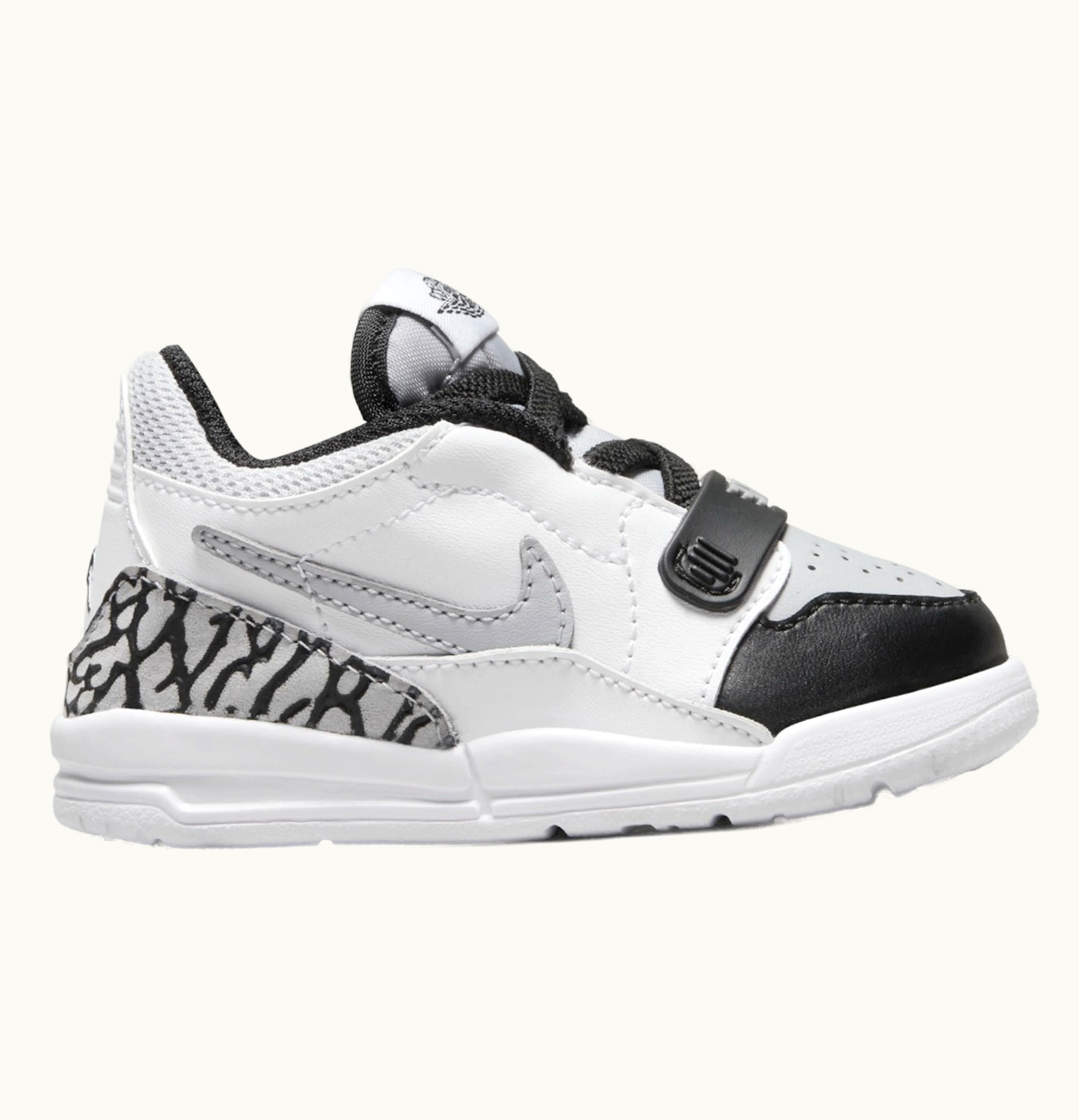 The Jordan Legacy 312 Low is a stylish and high-performance sneaker that features iconic design elements from several classic Jordan sneakers. This iteration of the shoe comes in a classic white, black, and wolf grey colorway that is perfect for combining with a range of outfits. Constructed with premium leather and synthetic materials, the shoe provides a comfortable, durable fit that can stand up to everyday wear. The low-cut design and padded collar offer added support around the ankle, while the rubber sole delivers excellent traction on any surface. In addition to its high-performance features, the shoe also includes several stylish details that pay homage to the Jordan legacy. These include the iconic elephant print at the heel, as well as the signature Jumpman logo on the tongue and heel. Whether you're hitting the court or simply looking for a fresh pair of kicks for everyday wear, the Jordan Legacy 312 Low White Black Wolf Grey (TD) is a versatile and stylish option that won't disappoint.