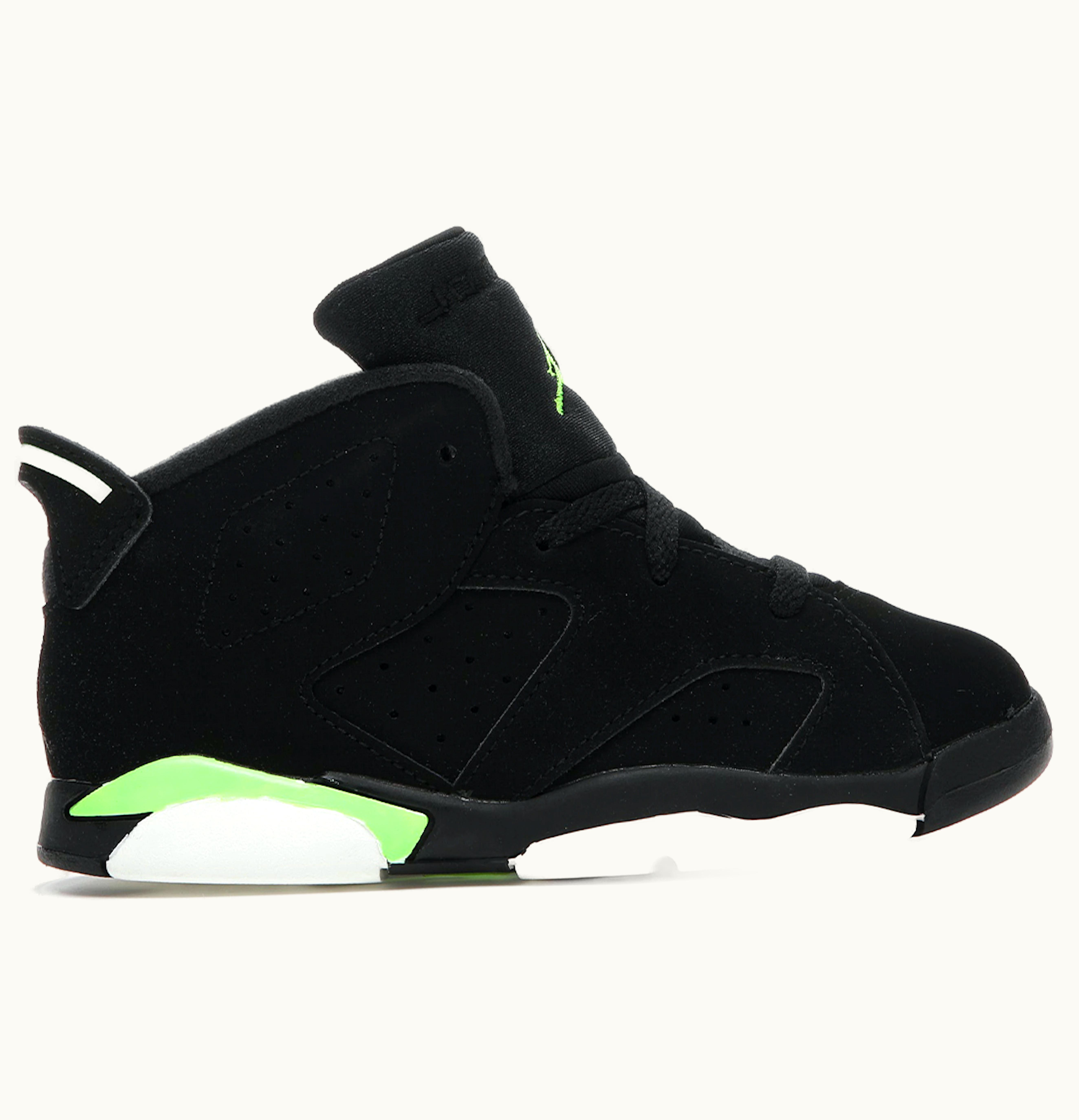 The Jordan 6 Retro Electric Green (TD) is a trendy and stylish footwear line for toddlers. The shoes come in an attractive electric green color that is visually appealing and distinctive. The shoes feature a mix of leather and synthetic materials that offer excellent durability and long-lasting performance. The heel and toe areas are reinforced to offer extra protection and support for young feet. The shoes also feature an adjustable ankle strap that ensures a secure and comfortable fit, allowing toddlers to run, play, and explore confidently. The Jordan 6 Retro Electric Green (TD) is perfect for active toddlers who love to move and jump, and it is sure to provide both style and functionality to their wardrobe.