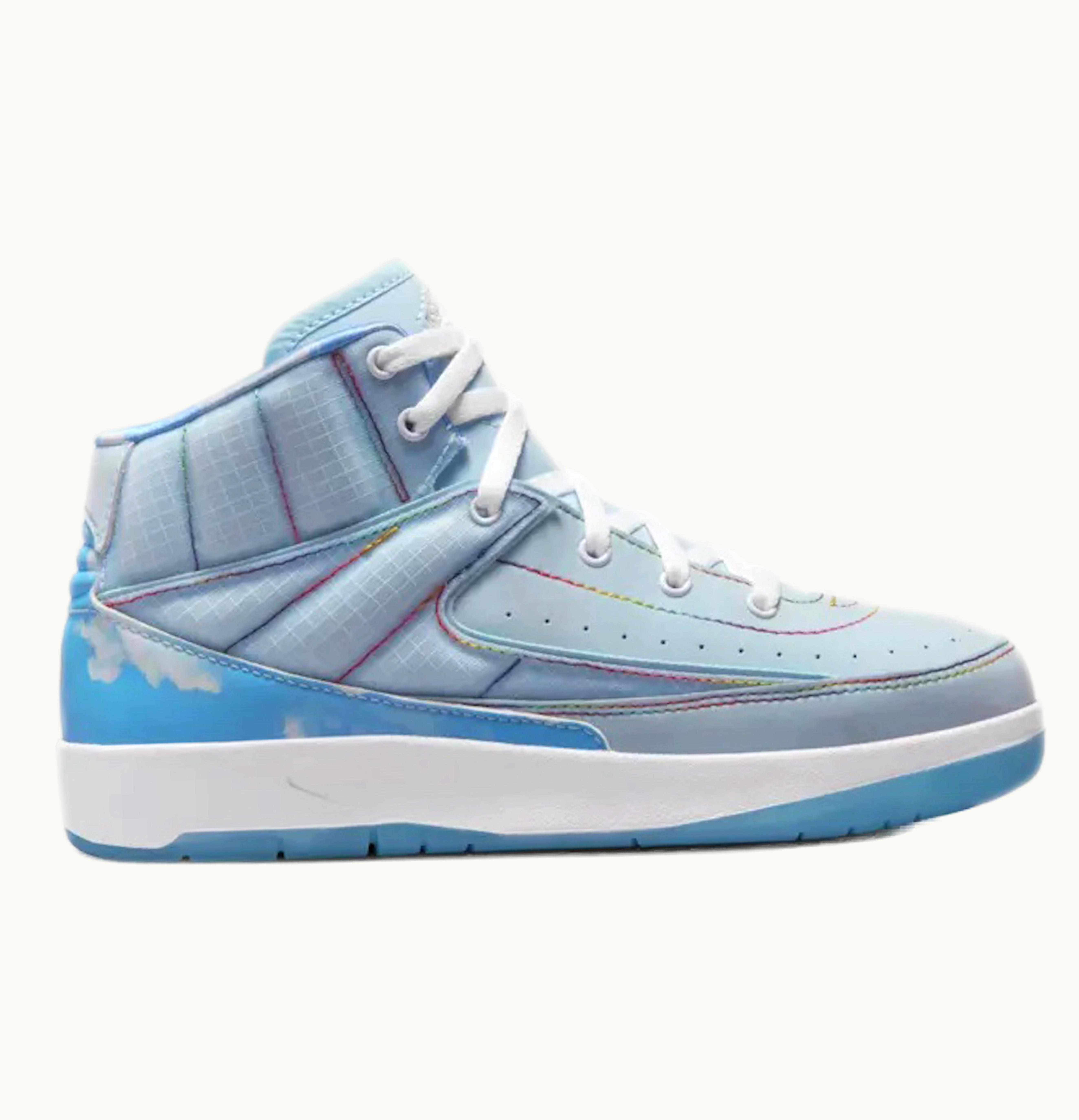 The Jordan 2 Retro J Balvin (PS) is a stylish and eye-catching basketball shoe for kids. It is designed with a unique multi-colored upper that features a bold and vibrant pattern, which is inspired by J Balvin's love for reggaeton music and his vibrant sense of style. The shoe is made with premium materials such as leather and synthetic materials, which ensure durability and comfort all day long. The Air cushioning technology in the sole provides great support and flexibility during play. The lace-up closure adds an extra level of security and ensures a snug, adjustable fit. This limited edition shoe is the perfect addition to your child's sneaker collection or to wear to their next basketball game.