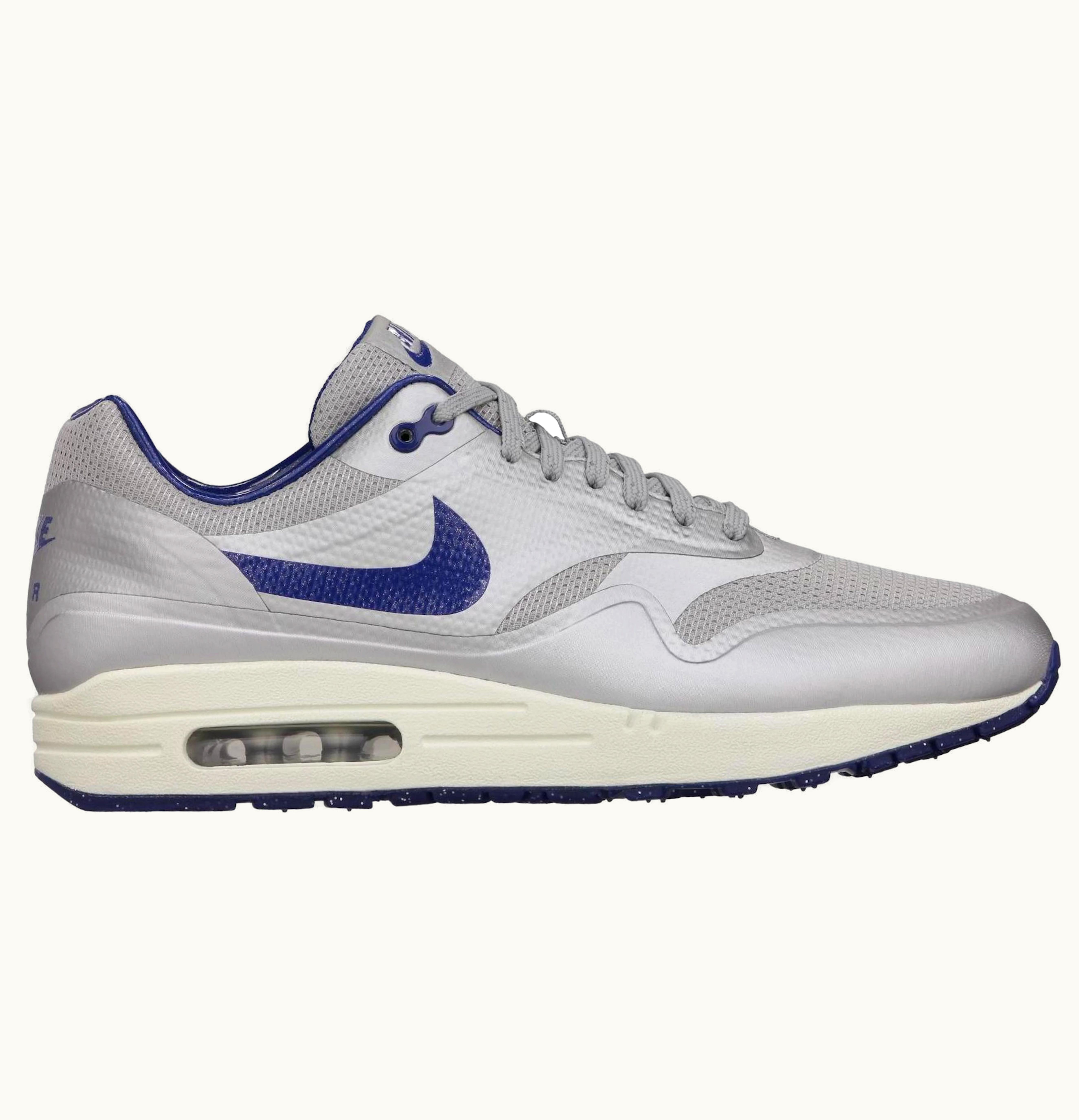 The Nike Air Max 1 Night Track Royal is a stunning pair of sneakers designed with a bold and visually striking style. These shoes prominently feature a rich royal blue colorway, with accents of black and white for a striking contrast. The upper is constructed from durable and breathable materials, with a combination of mesh, leather, and synthetic overlays for added support and style. The Nike Air Max 1 Night Track also features the iconic Air-Sole unit in the heel for maximum comfort and cushioning with each step. The outsole is made from durable rubber with a waffle pattern for enhanced traction and durability. These sneakers are the perfect addition to any sneakerhead's collection, offering a stylish and comfortable silhouette for everyday wear. So if you're looking for a sleek and striking pair of sneakers that will turn heads wherever you go, the Nike Air Max 1 Night Track Royal is the perfect choice for you.