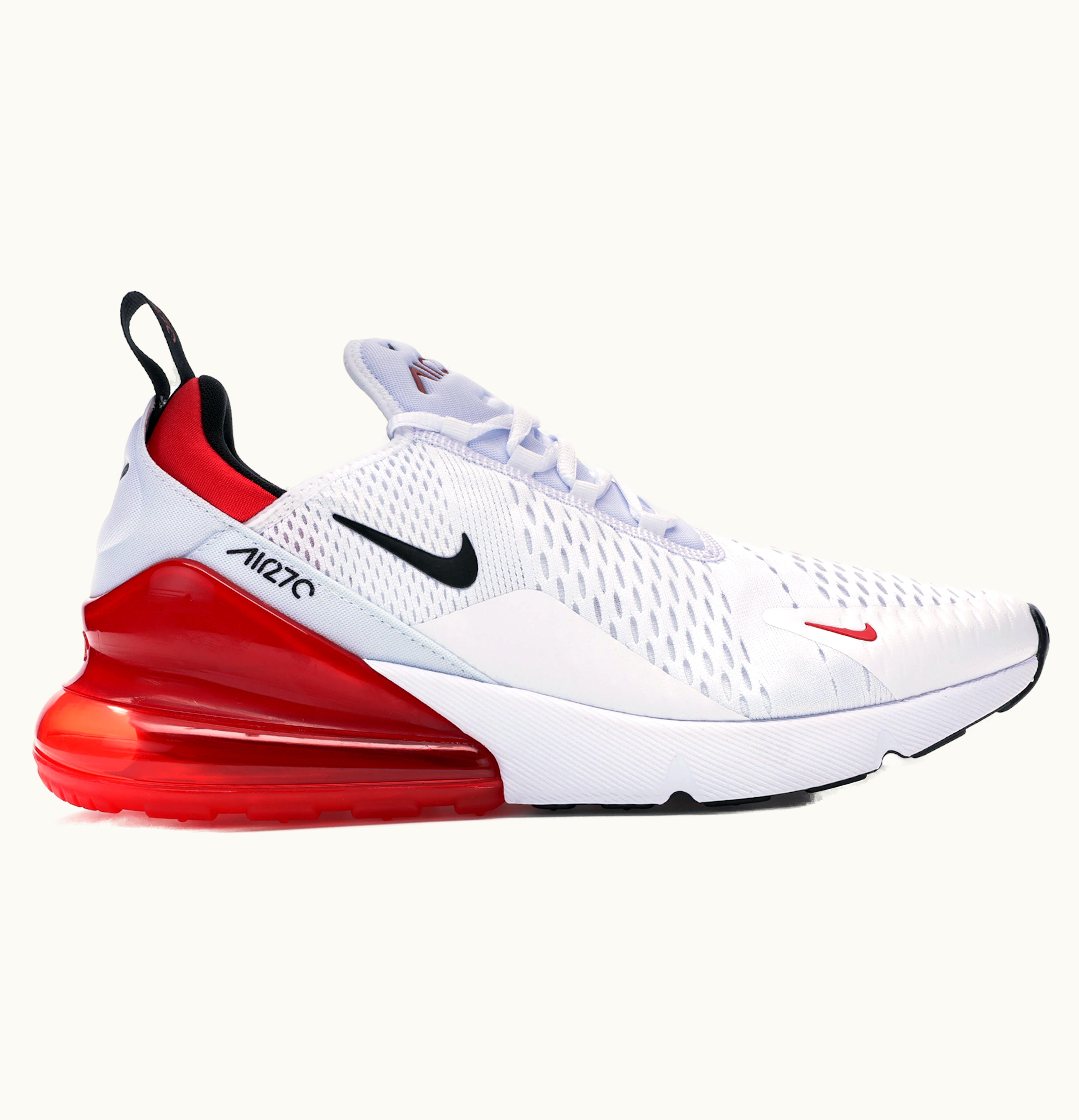 You don't have to search anymore because Nike has introduced a new flavor to a timeless shoe with the Air Max 270 White Black University Red. This version features a completely white upper, a black Nike "Swoosh", white midsole, red Air Max bubble, and a black sole. These shoes were launched in November 2018 at a price of $150. Give your shoe collection some energy and purchase these shoes on GLINT.