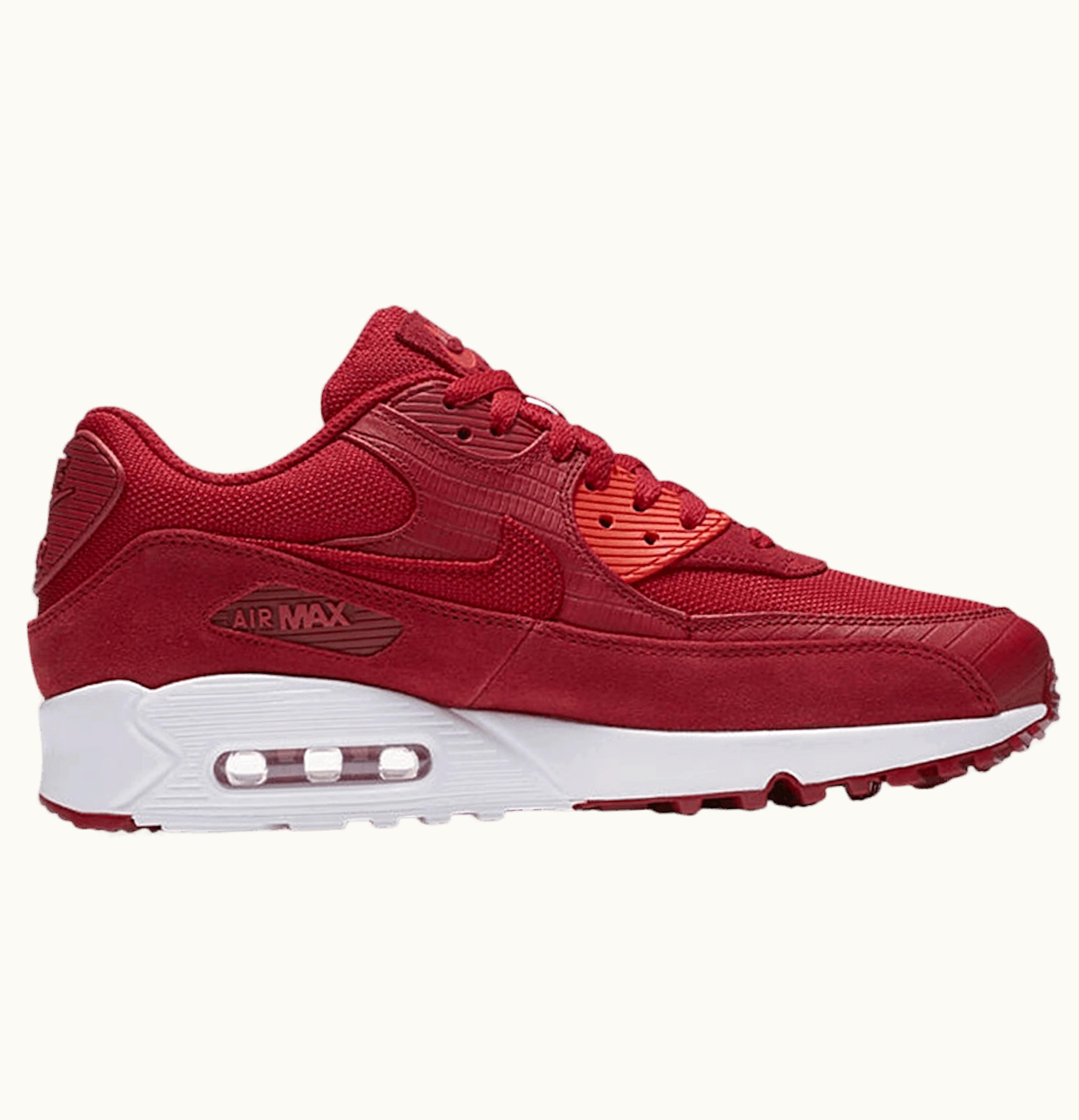 Nike Air Max 90 Premium Gym Red is a stylish and comfortable running shoe that features a classic design with a modern twist. The upper is made up of premium leather, mesh, and suede materials in a striking Gym Red color. The shoe also features a visible Air-Sole unit in the heel for added cushioning and support during your workouts. The outsole is made up of rubber material that provides excellent traction and durability. The Nike Air Max 90 Premium Gym Red is an ideal shoe for anyone looking for a combination of style and performance.