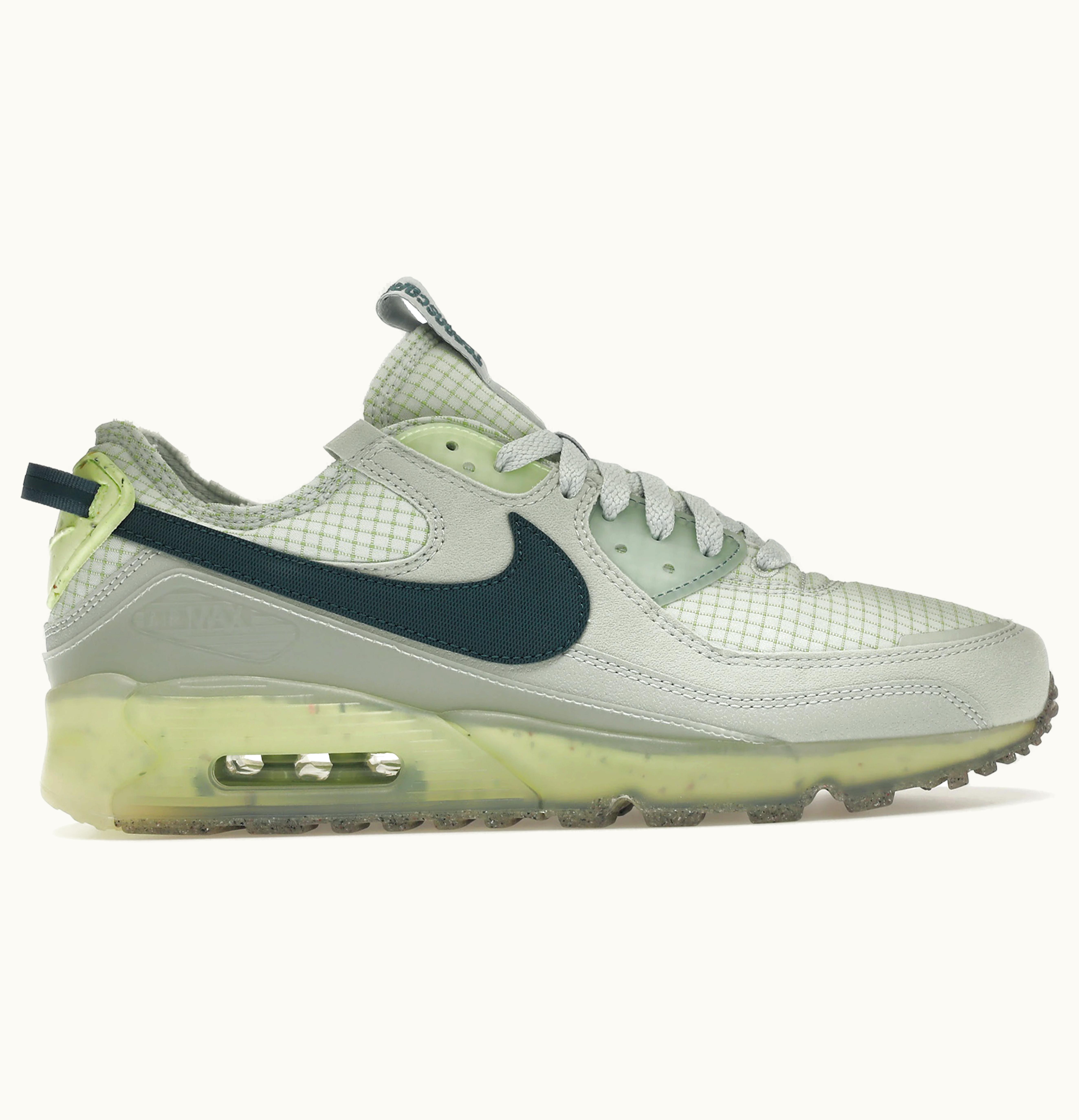 The Nike Air Max 90 Terrascape Grey Haze Dark Teal Green Seafoam is the perfect blend of style and functionality. These sneakers feature a durable, multi-texture upper made of high-quality materials that are both stylish and breathable. The grey haze colorway pairs perfectly with the dark teal green and seafoam accents throughout the shoe. These shoes are also equipped with the signature Air Max technology, offering unparalleled cushioning and support for your feet. The outsole is made of a sturdy rubber material for superior traction and durability, making them perfect for all types of terrain. Whether you're hitting the trails or simply running errands around town, these Nike Air Max 90 sneakers will provide the style, comfort, and support you need for any occasion.